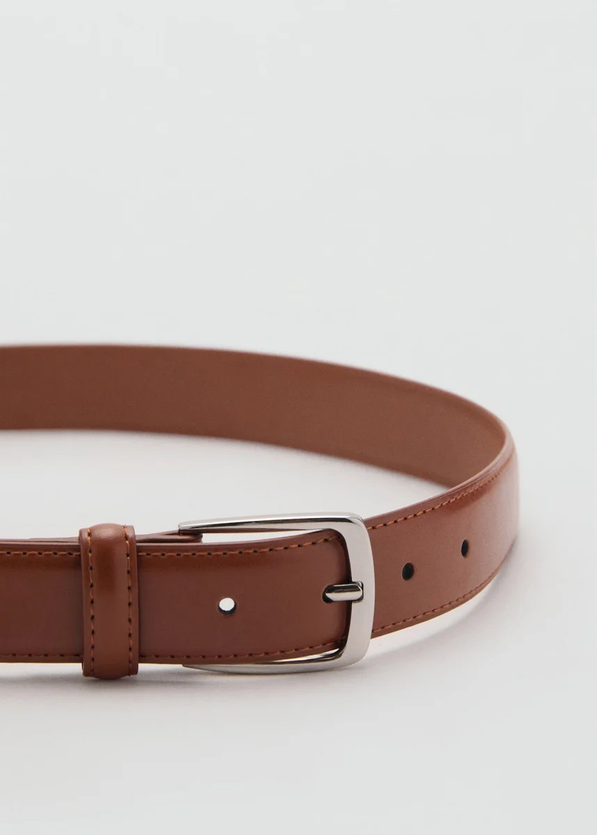100% pelle bovina. Fibbia metallica. Design sottile. Perforazione per la regolazione libera della taglia nei negozi MANGO.