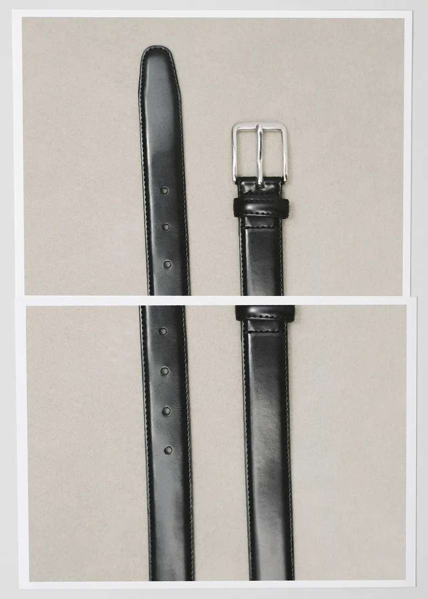 100% pelle bovina. Fibbia metallica. Design sottile. Perforazione per la regolazione libera della taglia nei negozi MANGO.
