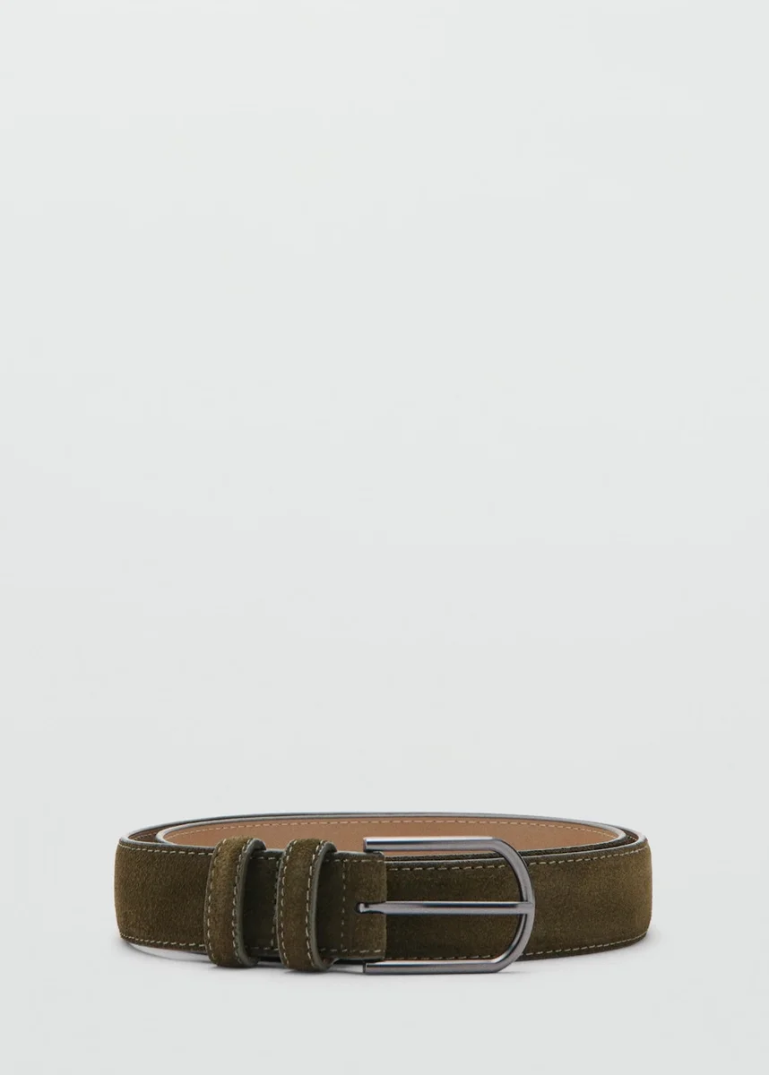 100% pelle scamosciata. Fibbia metallica. Perforazione per la regolazione libera della misura nei negozi MANGO.