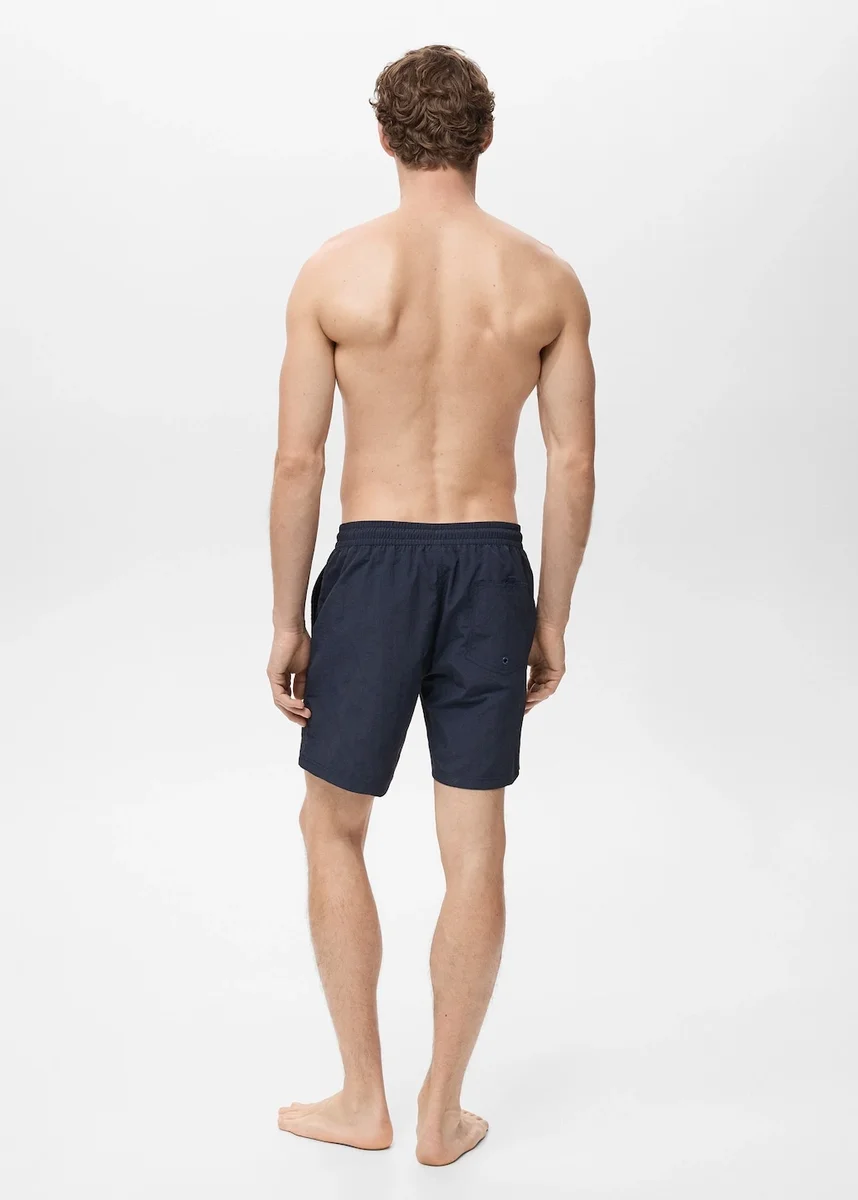 Modello boxer. Elastico in vita con coulisse regolabile. Due tasche laterali. Tasca posteriore applicata con velcro. Piccoli spacchi laterali sull’orlo. Prodotto in promozione.