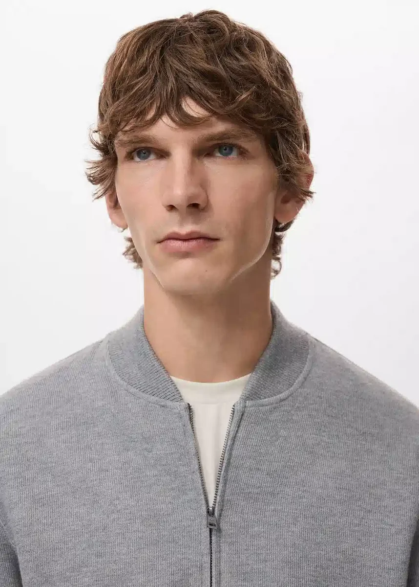 Vestibilità regolare. Tessuto misto cotone. Design bomber. Due tasche laterali. Collo, polsini e orlo a costine. Chiusura frontale con zip.