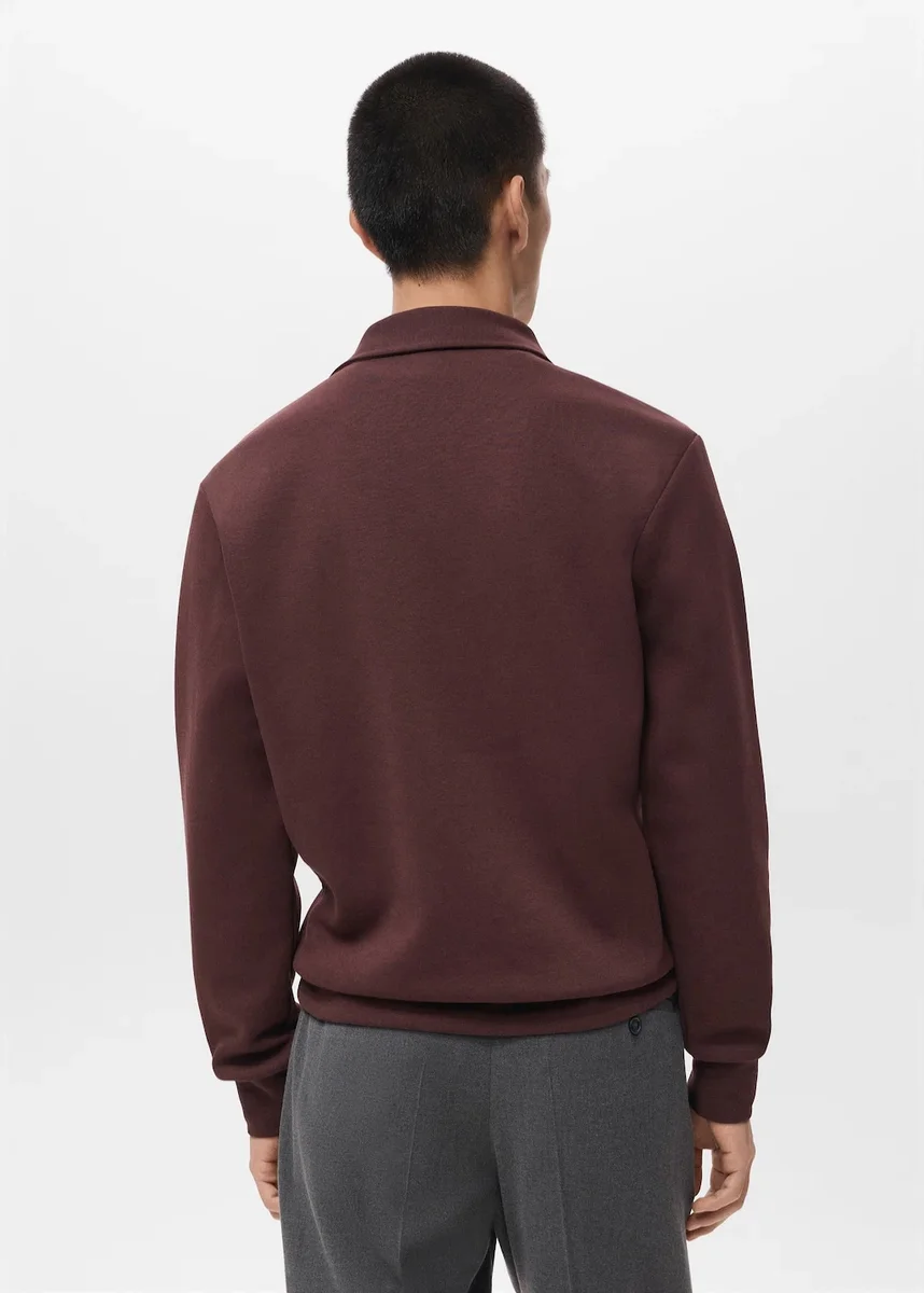 Tessuto misto cotone. Vestibilità regolare. Collo alto con chiusura a zip. Maniche lunghe con polsini elasticizzati. Orlo dritto.