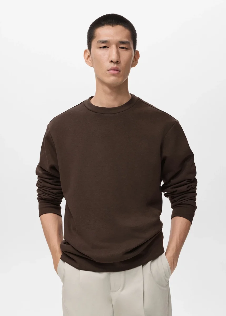Il colore marrone è un’esclusiva online. Tessuto misto cotone. Vestibilità regolare. Girocollo. Maniche lunghe con polsini elasticizzati. Finiture a costine su collo, polsini e orlo.