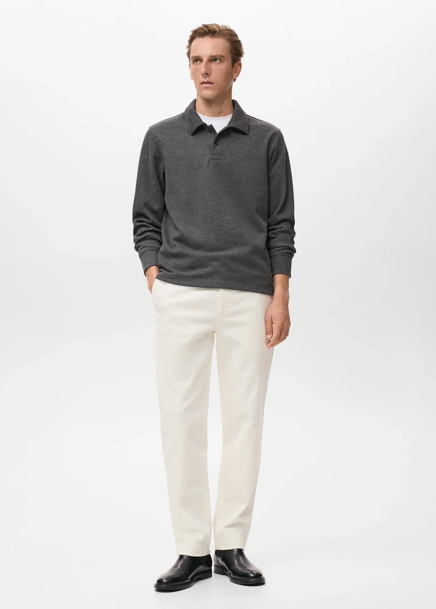 Tessuto in cotone. Vestibilità regolare. Colletto polo con chiusura a bottoni