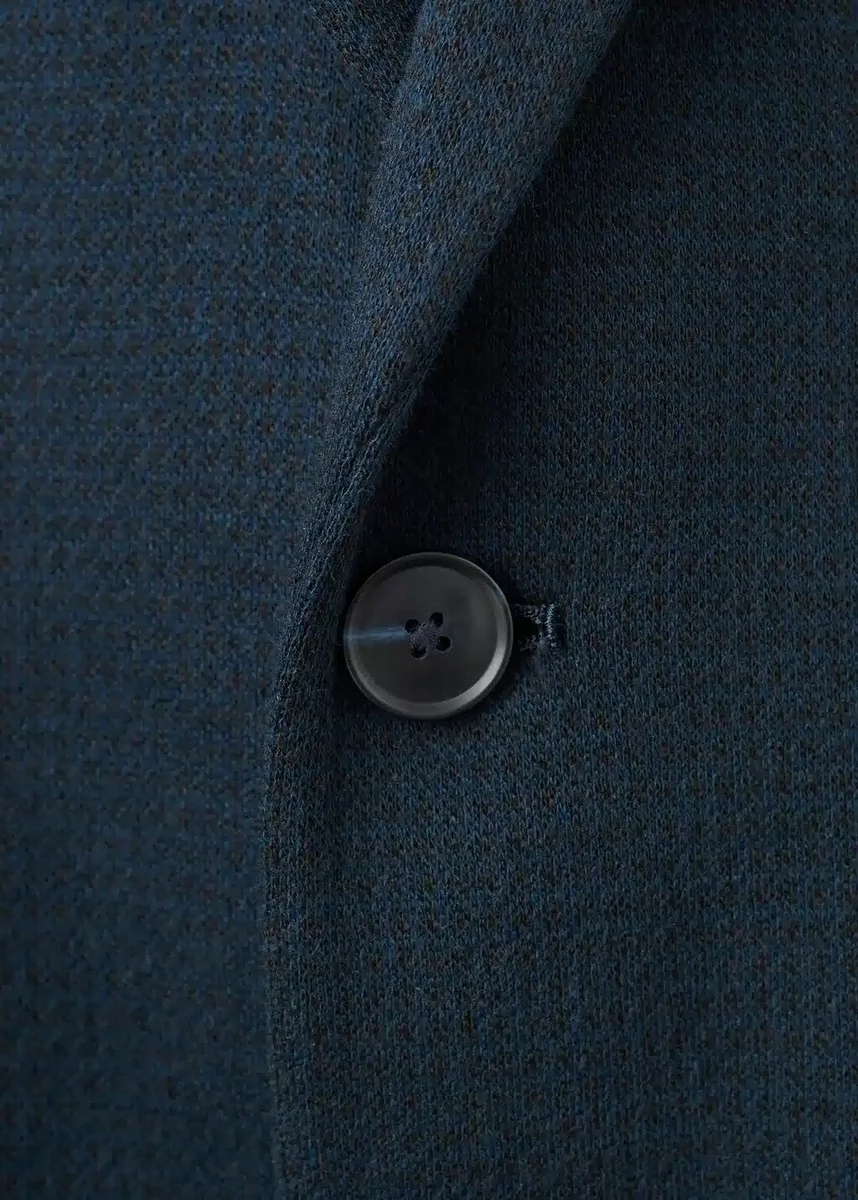 Vestibilità slim. Tessuto misto cotone. Revers classico e asola. Tasca a filetto sul petto. Due tasche con patta sul davanti. Tasca interna. Chiusura frontale con bottoni.