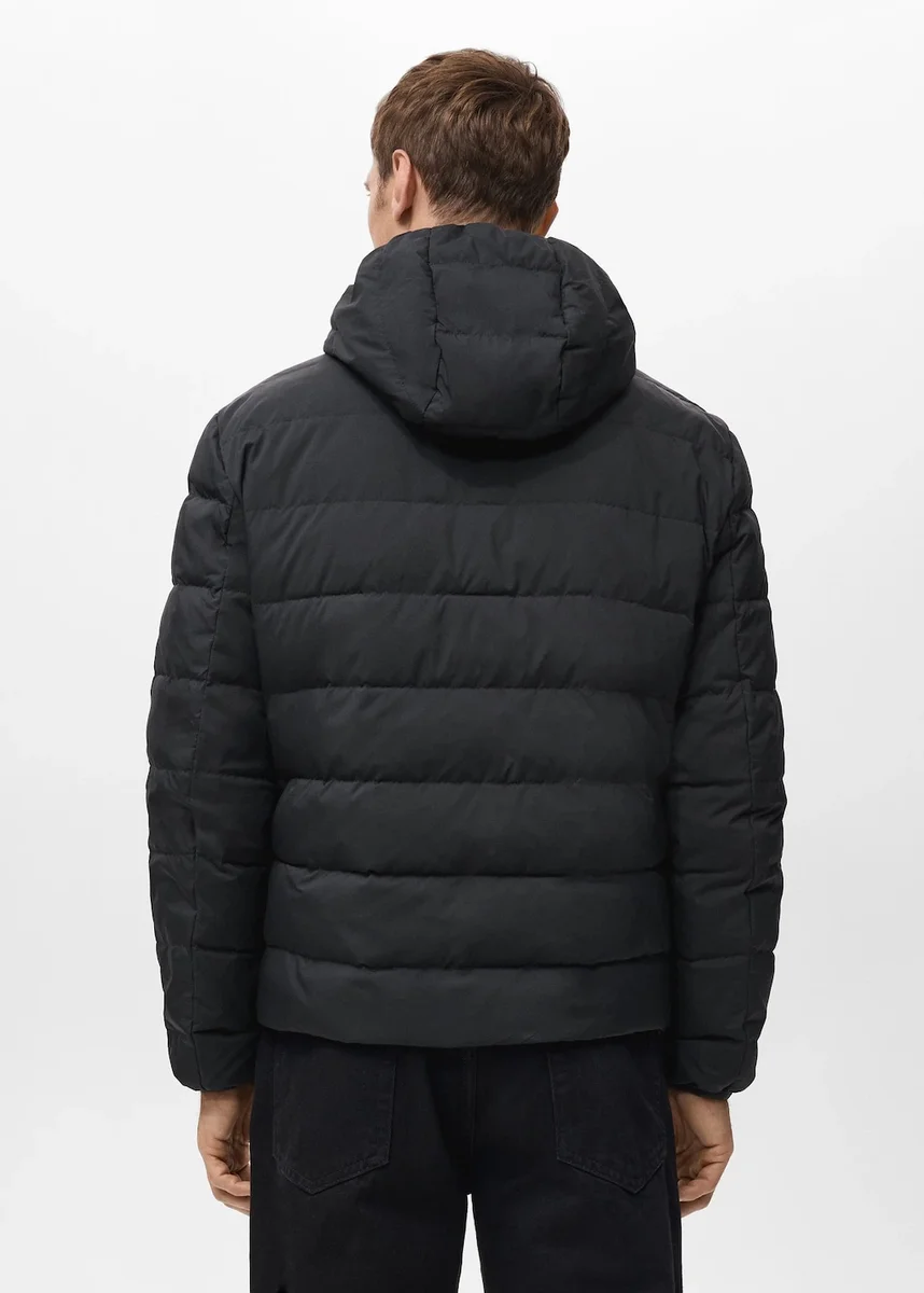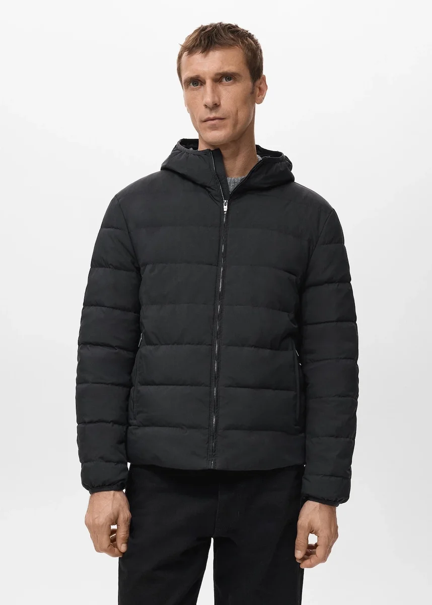 Lunghezza standard. Maniche lunghe. Silhouette dritta. Struttura leggera e piatta. Chiusura frontale. Cappuccio con risvolto. Imbottitura in piuma. Idrorepellente: tessuto tecnico idrorepellente. Design trapuntato. Imbottitura 70/30 in piuma e piumino. Collo alto. Con cappuccio. Chiusura con zip sul davanti. Due tasche a filetto sul davanti con chiusura a zip. Tasca interna con chiusura a zip. Maniche lunghe. Orlo dritto. Fodera interna. Ripiegabile: il capo è dotato di una tasca interna per riporlo.