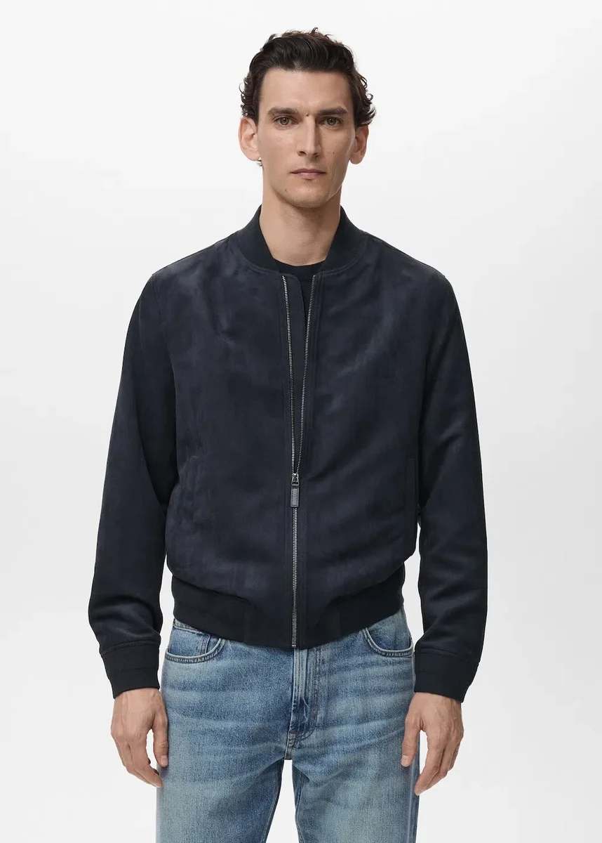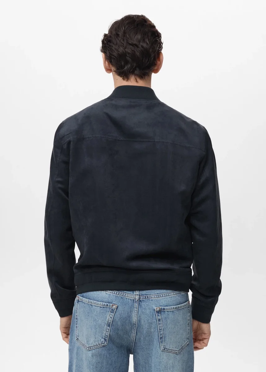 Silhouette dritta. Stile bomber. Chiusura con zip. Due tasche laterali. Finitura a costine su collo, polsini e orlo.