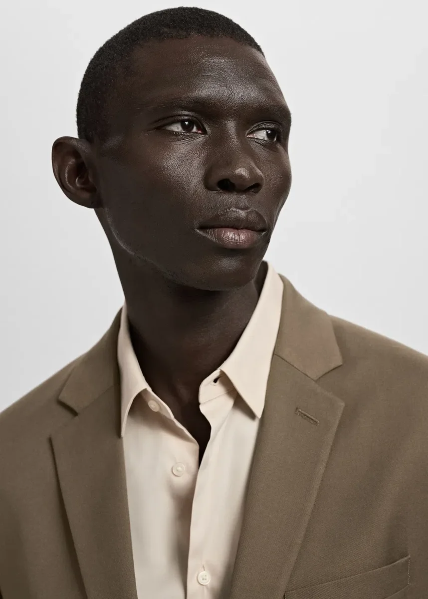 Vestibilità super slim. Revers classico e asola. Tasca a filetto sul petto. Due tasche con patta sul davanti. Tasca interna. Fodera interna. Maniche lunghe con polsini con striscia abbottonata. Chiusura frontale con bottoni