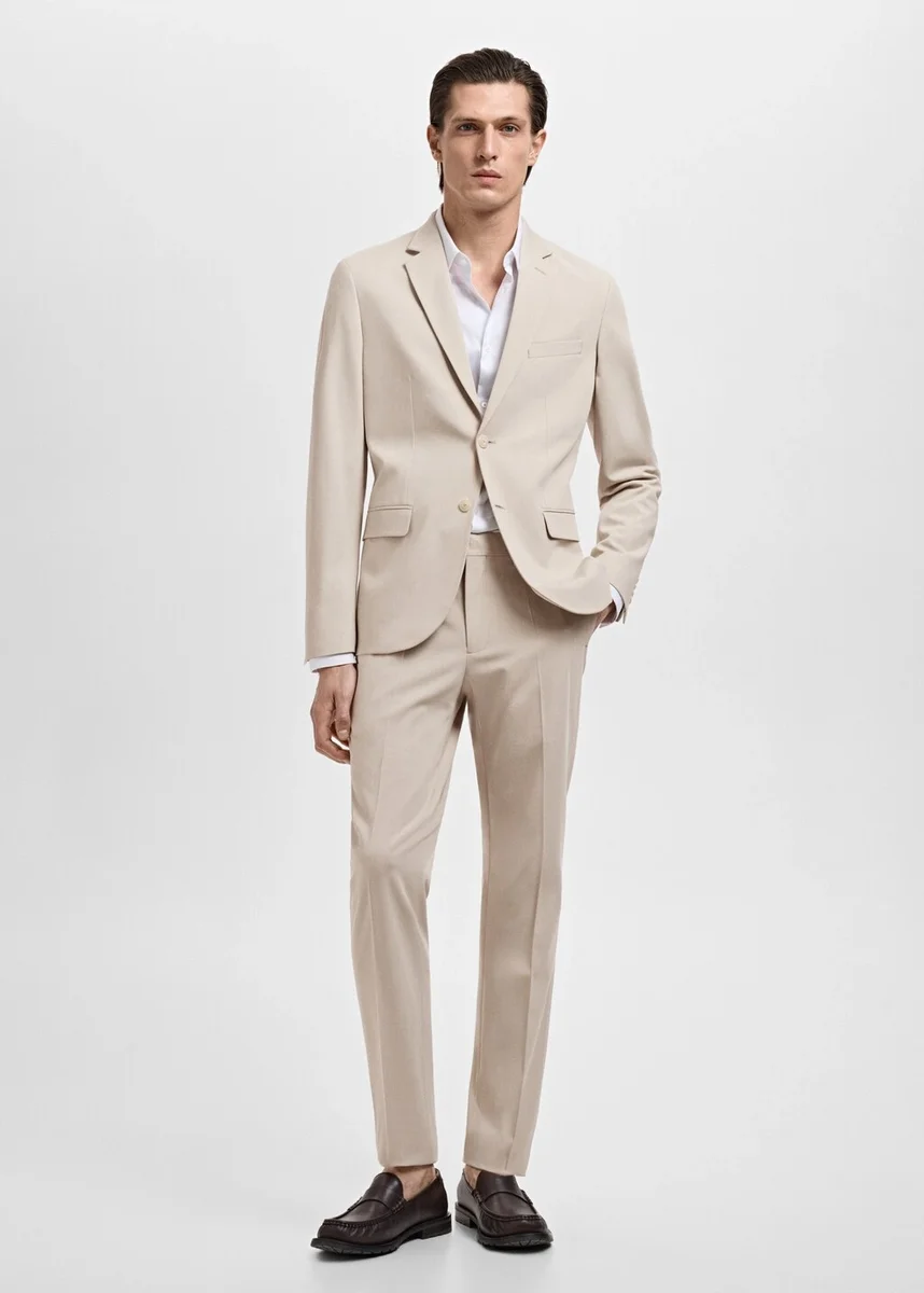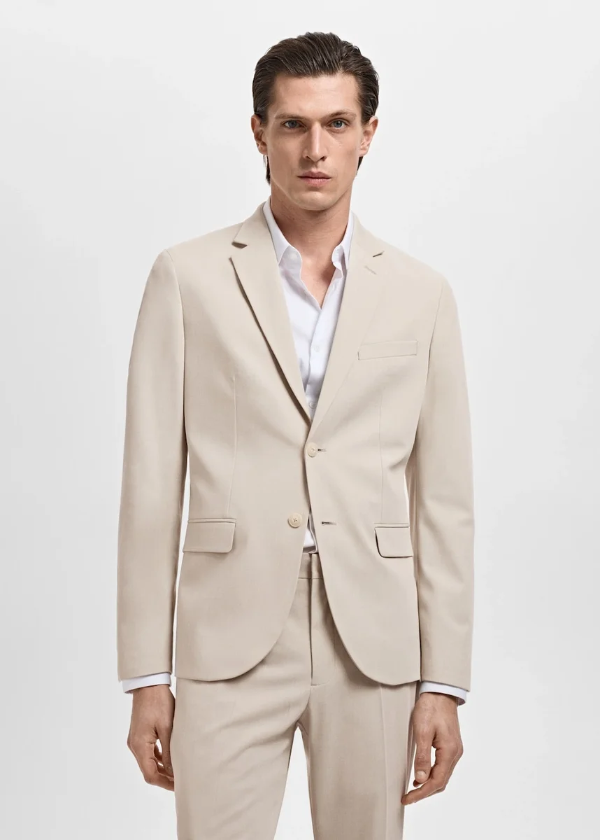 Rivestimento con revers a dente e asola. Chiusura frontale con bottoni. Una tasca a filetto sul petto. Due tasche con patta sul davanti. Polsini con bottoni. Orlo con due spacchi laterali. Tasca interna. Fodera interna. Vestibilità super slim. Comfort Stretch: tessuto elasticizzato che offre un comfort extra. Chiusura frontale con due bottoni. Tasca a filetto sul petto. Maniche lunghe con polsini con bottoni. Doppio spacco sul retro. Tasche interne. Collezione sartoriale