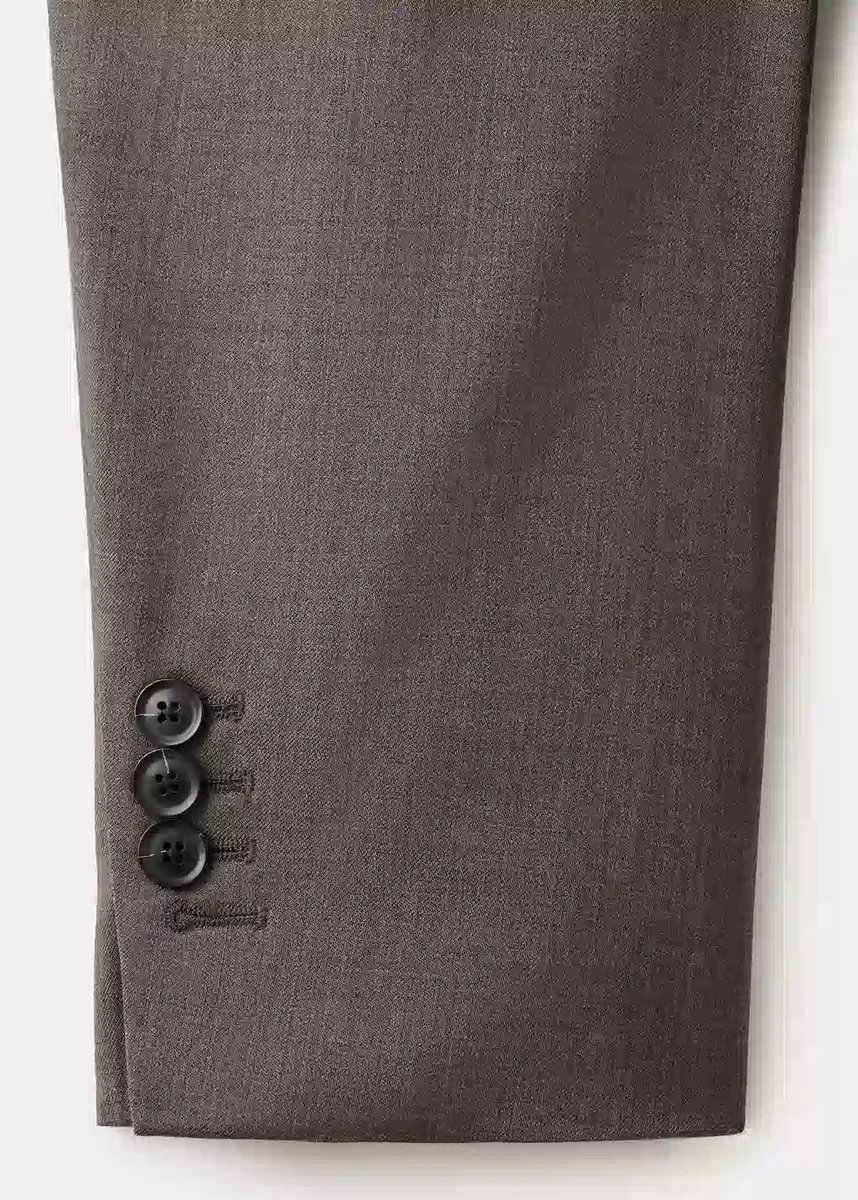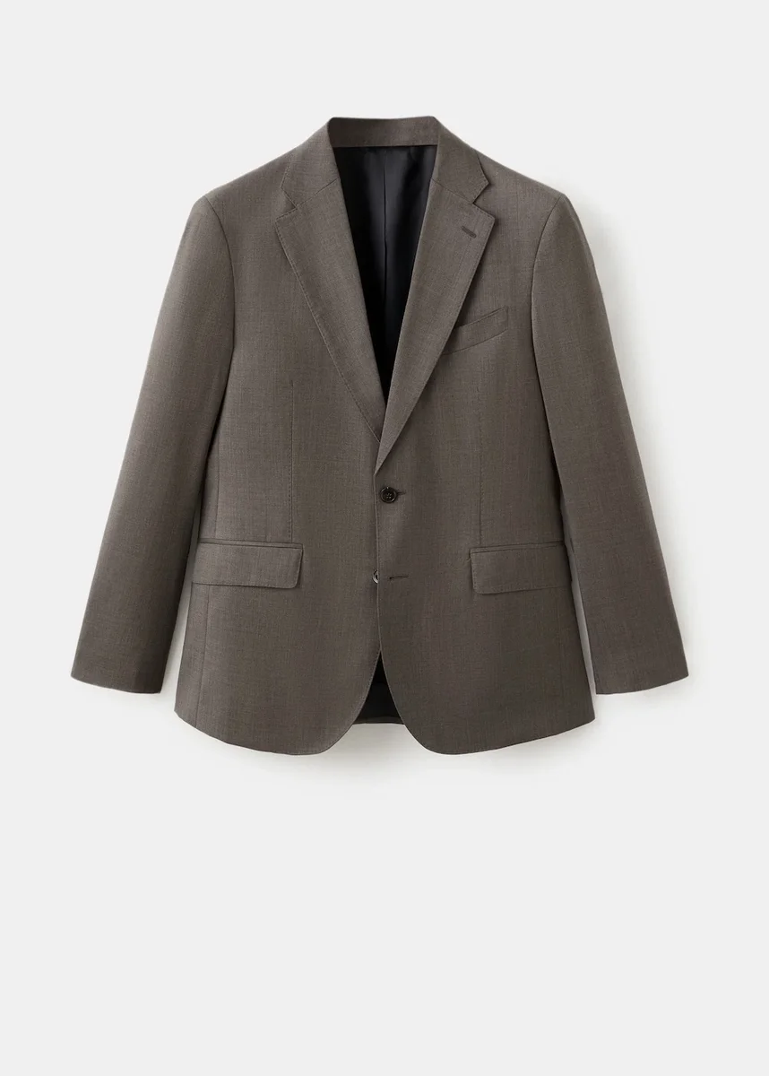 Vestibilità slim. Tessuto 100% lana vergine. Colletto con revers a dente. Tasca a filetto sul petto. Tasca con patta sul retro. Tasca interna. Doppio spacco posteriore sull’orlo. Fodera interna. Maniche lunghe con polsini abbottonati. Chiusura frontale con bottoni