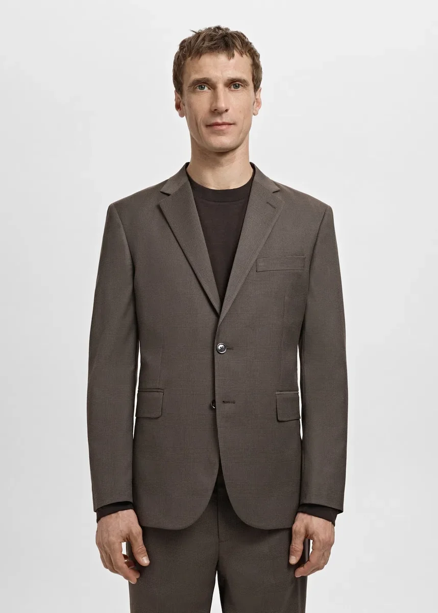 Vestibilità slim. Revers classico e asola. Tasca a filetto sul petto. Due tasche laterali con patta. Polsini con bottoni. Fodera interna. Chiusura frontale con bottoni