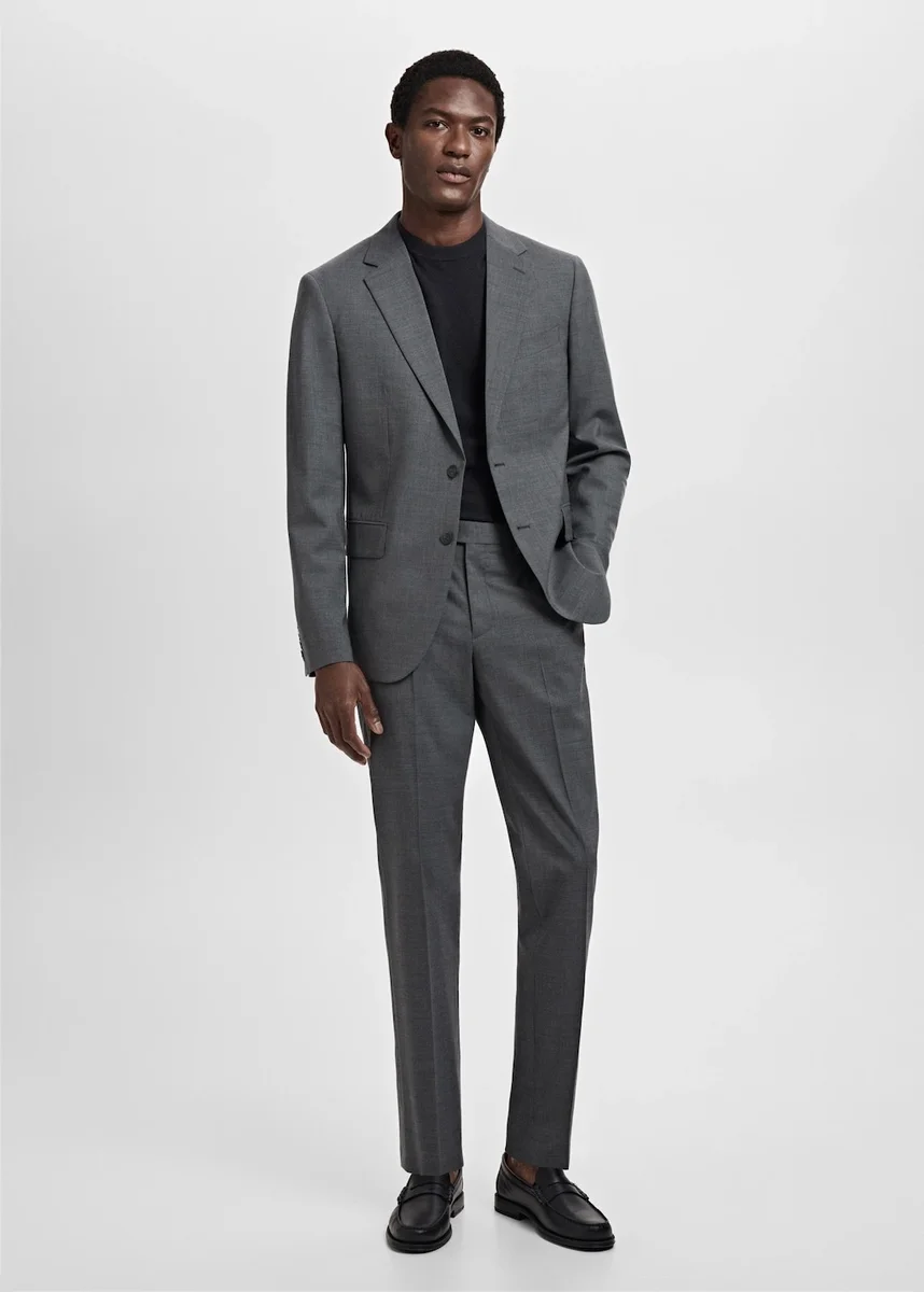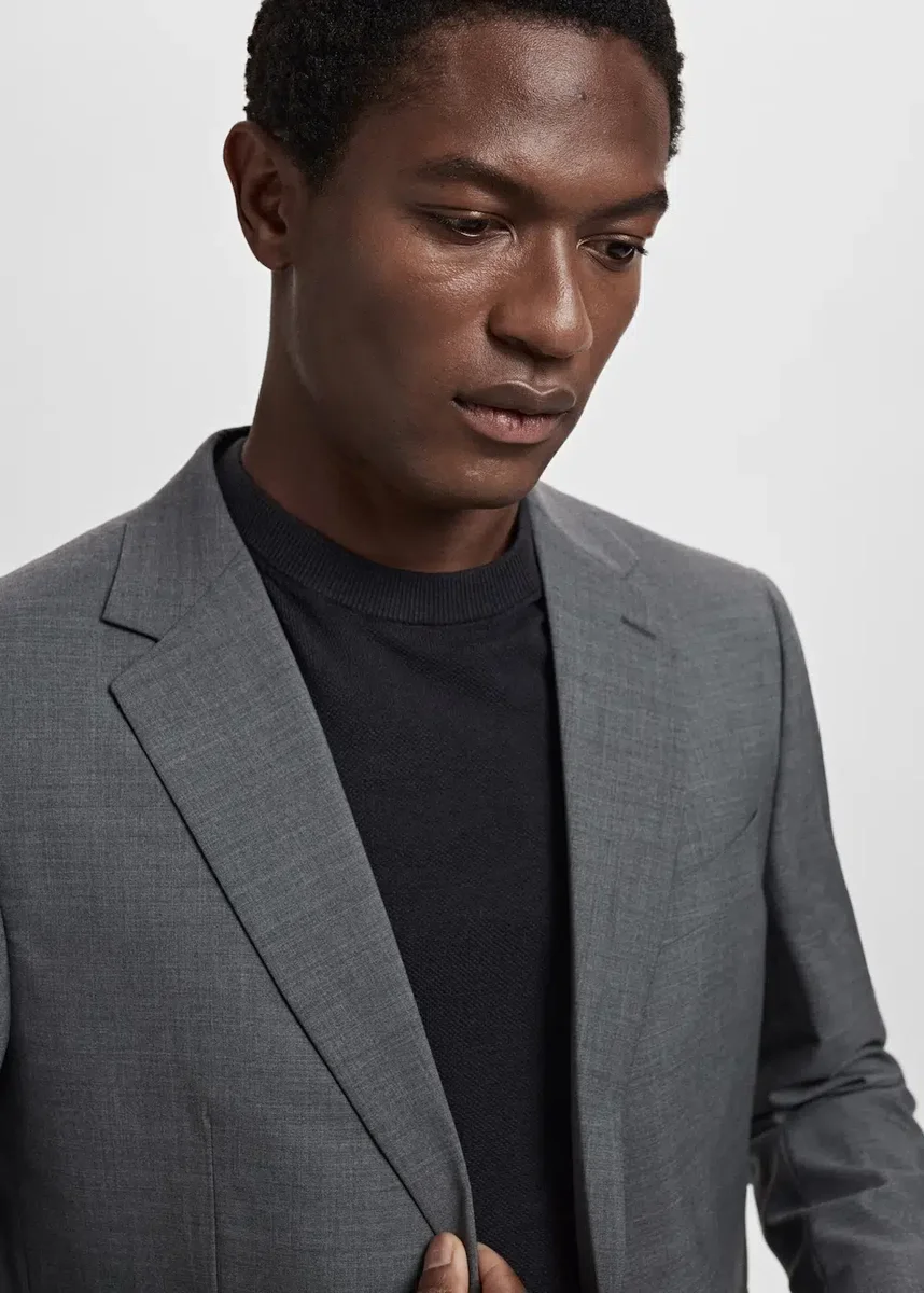 Vestibilità slim. Tessuto 100% lana vergine. Fodera interna. Tasca a filetto sul petto. Due tasche a filetto sul davanti. Due spacchi sul fondo posteriore.