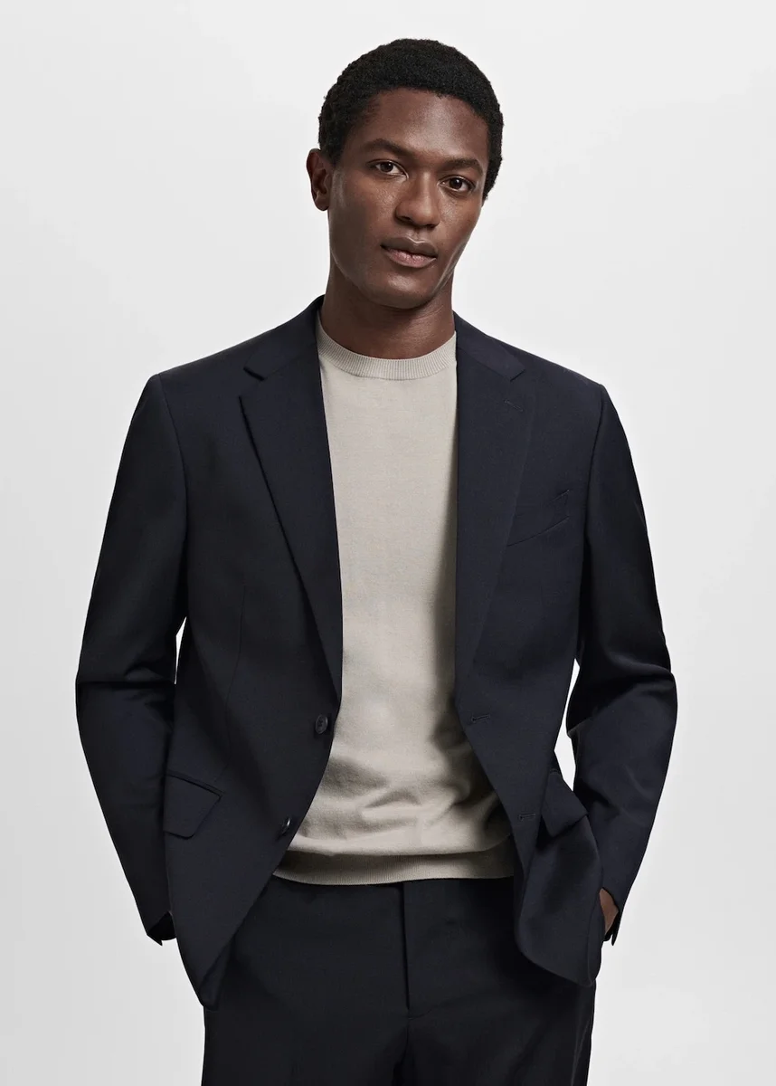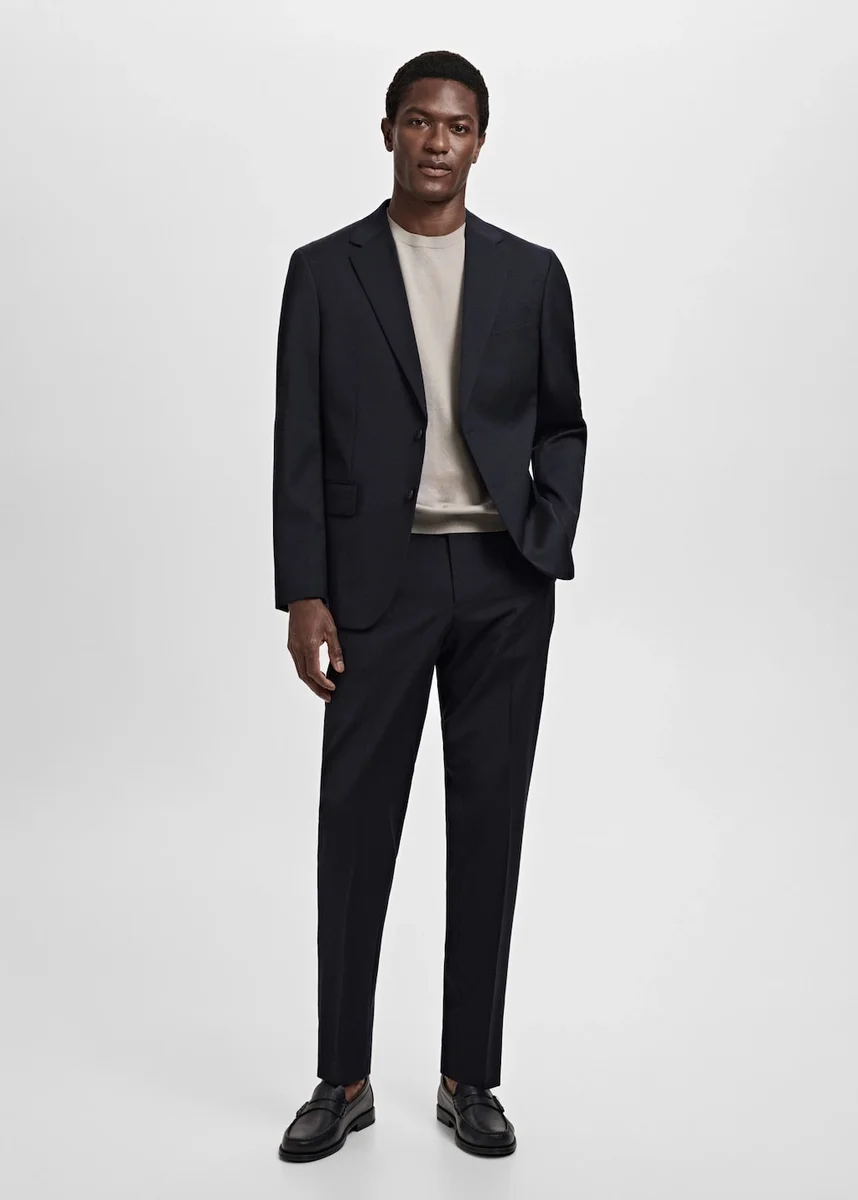 Vestibilità slim. Tessuto 100% lana vergine. Fodera interna. Tasca a filetto sul petto. Due tasche a filetto sul davanti. Due spacchi sul fondo posteriore.