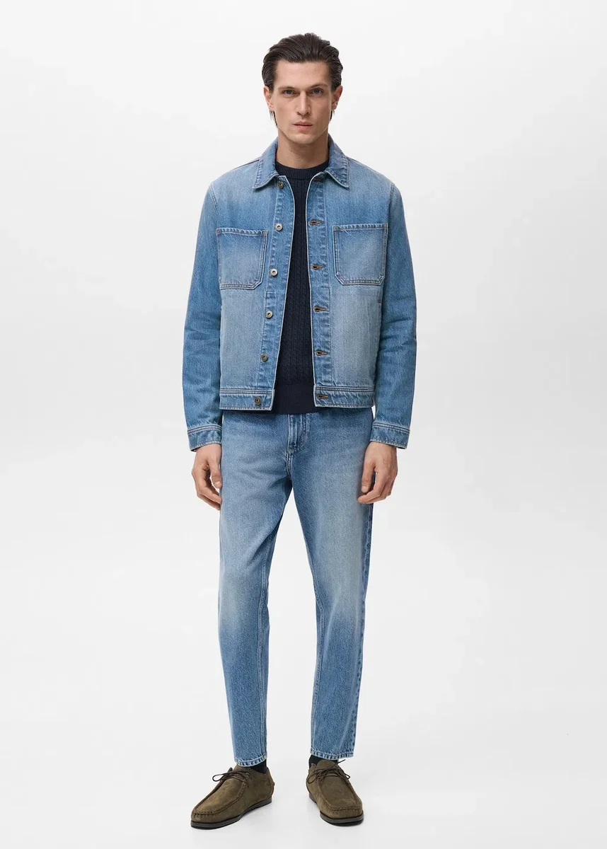 Vestibilità slim. Dettagli cuciti a punto indietro. Colletto camicia. Due tasche applicate sul petto. Due tasche applicate sui fianchi. Chiusura frontale con bottoni in metallo. Maniche lunghe con polsini abbottonati. Passante con bottone in vita