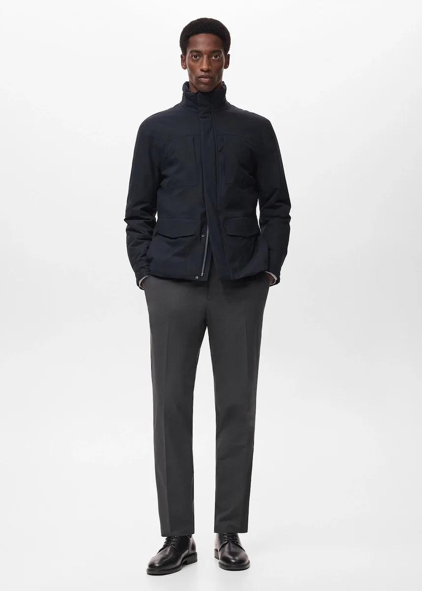 Silhouette dritta. THERMOLITE®: tessuto che, grazie alla sua tecnologia delle fibre, offre isolamento termico e traspirabilità. Impermeabile: questa finitura resistente impedisce all’acqua di penetrare attraverso il tessuto, fornendo la migliore protezione possibile contro la pioggia. Comfort: tessuto elasticizzato in orizzontale e verticale per un maggiore comfort. Antivento: questo materiale resistente offre protezione dal vento per un maggiore comfort nella vita all’aria aperta. Tessuto termoregolatore. Collo a imbuto. Due tasche con patta sul davanti. Tasca interna. Dettaglio arricciato in vita. Maniche lunghe con polsini abbottonati. Chiusura frontale con bottoni e zip nascosta con pattina. PRESTAZIONI: Una collezione di capi realizzati con fibre tecniche. Questa selezione offre un’ampia gamma di caratteristiche avanzate come tessuti bi-elasticizzati e proprietà di asciugatura rapida, facile stiratura, termoregolazione, traspirabilità o idrorepellenza, organizzate in tre categorie generali: Termoregolazione, Funzionalità e Comfort.