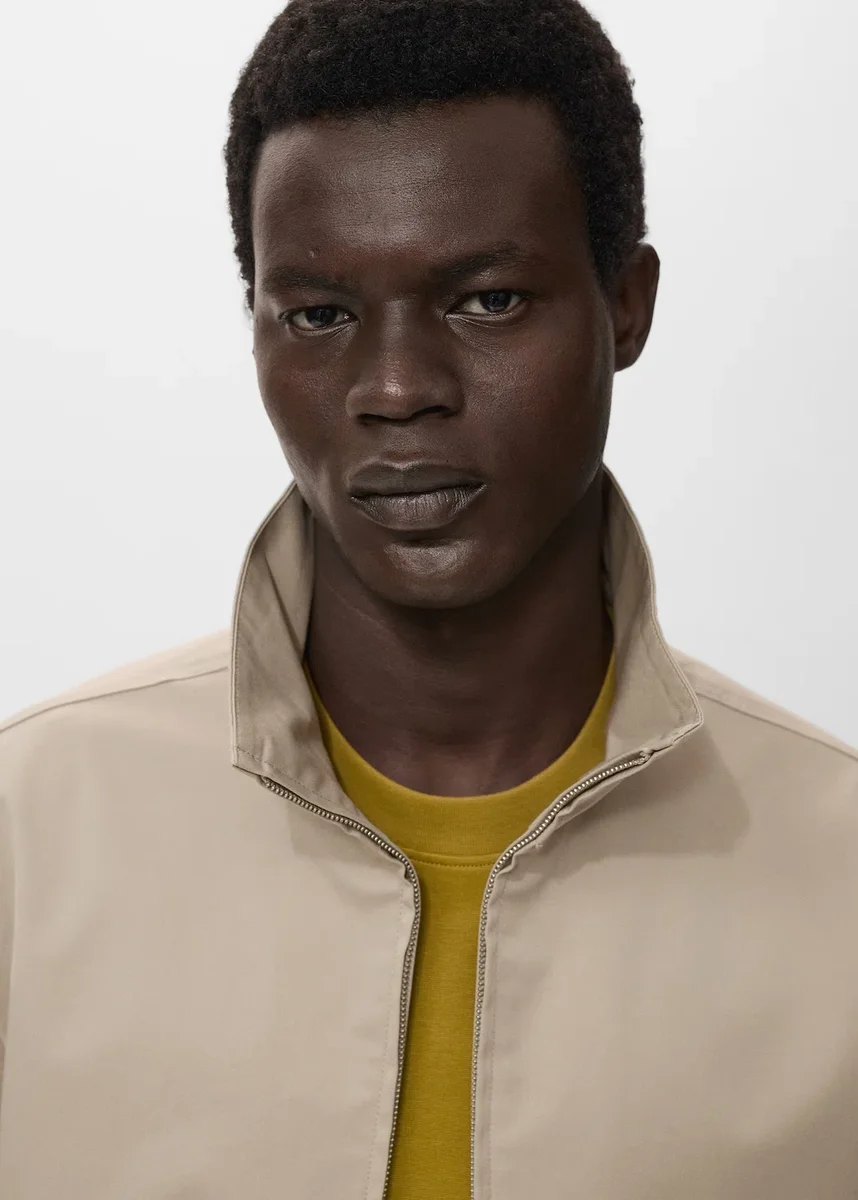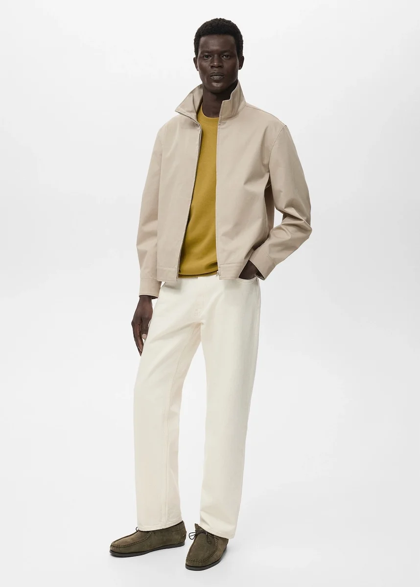 Tessuto misto cotone. Silhouette dritta. Collo con revers a imbuto. Due tasche laterali a filetto. Maniche lunghe. Polsini con bottoni. Chiusura frontale con zip. Orlo regolabile con bottone