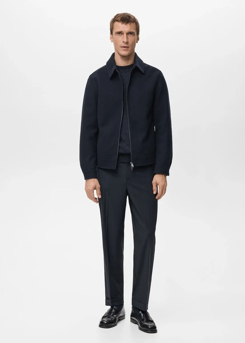 Vestibilità regolare. Colletto camicia. Due tasche laterali. Maniche lunghe con polsini abbottonati. Orlo dritto. Chiusura con zip a doppio cursore.