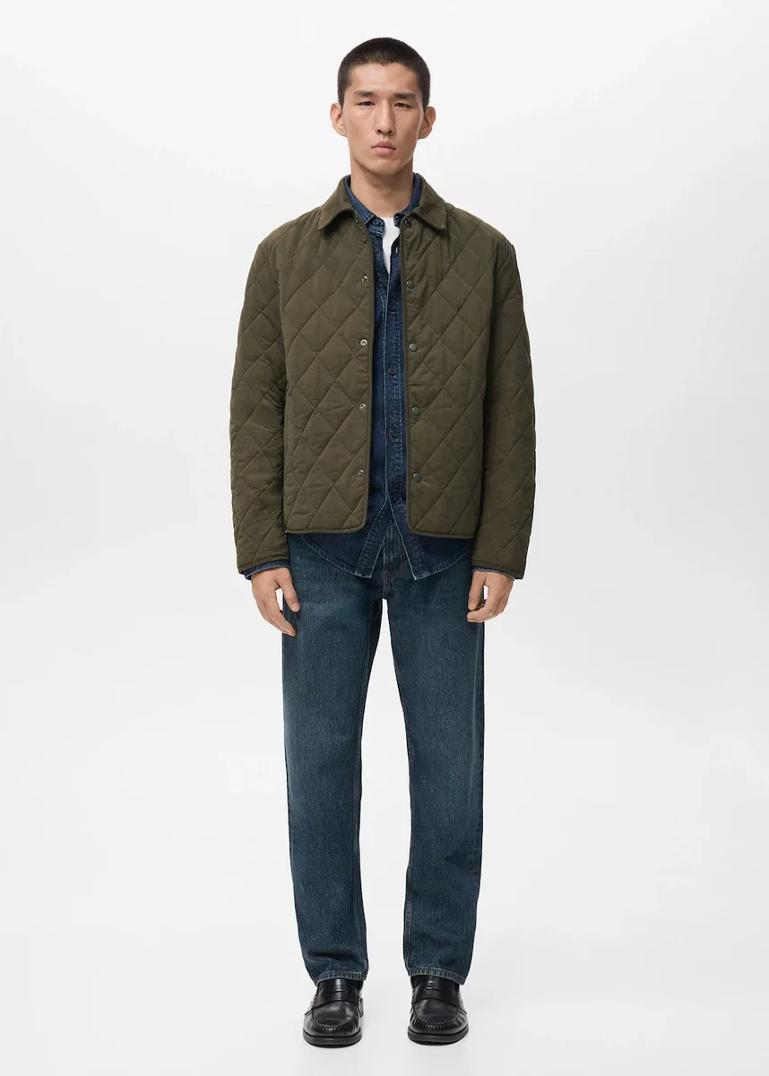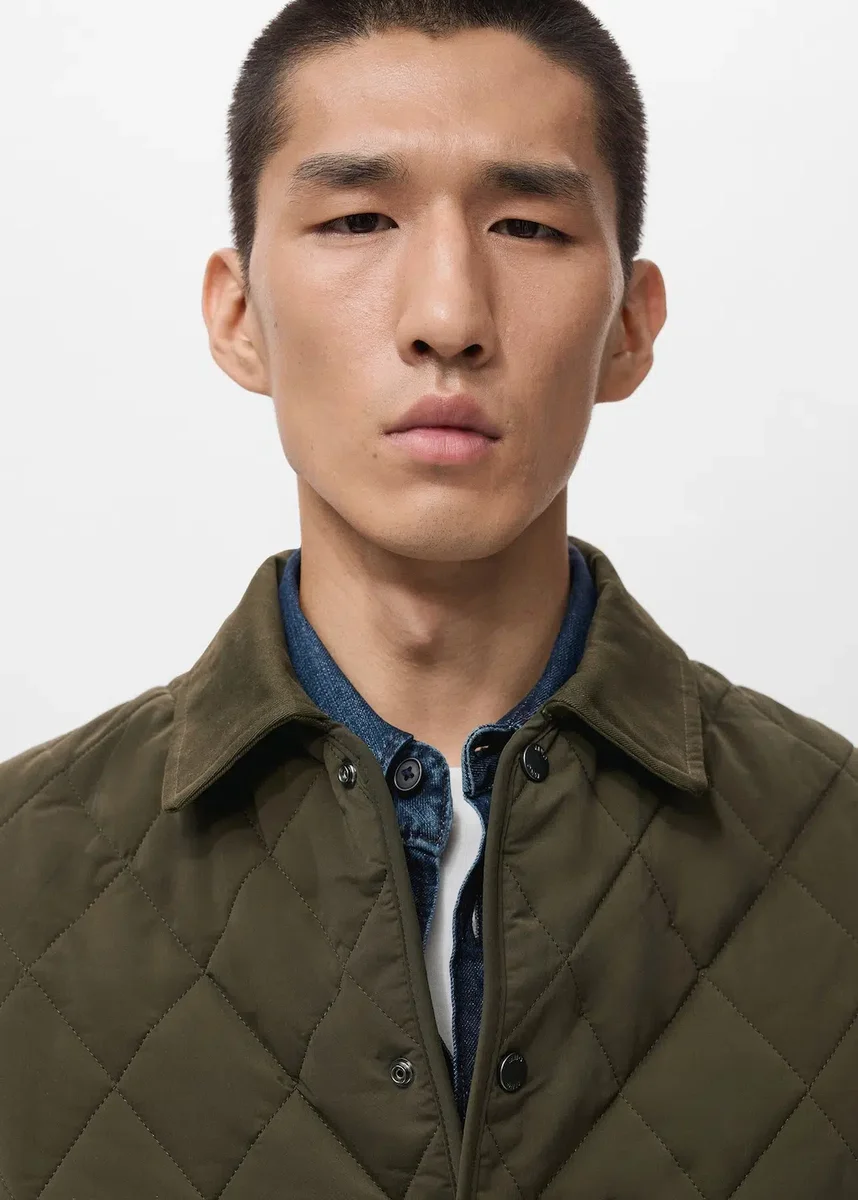 Idrorepellente: tessuto tecnico idrorepellente. Silhouette dritta. Design trapuntato con struttura a rombi. Colletto camicia. Due tasche laterali a filetto. Orlo dritto