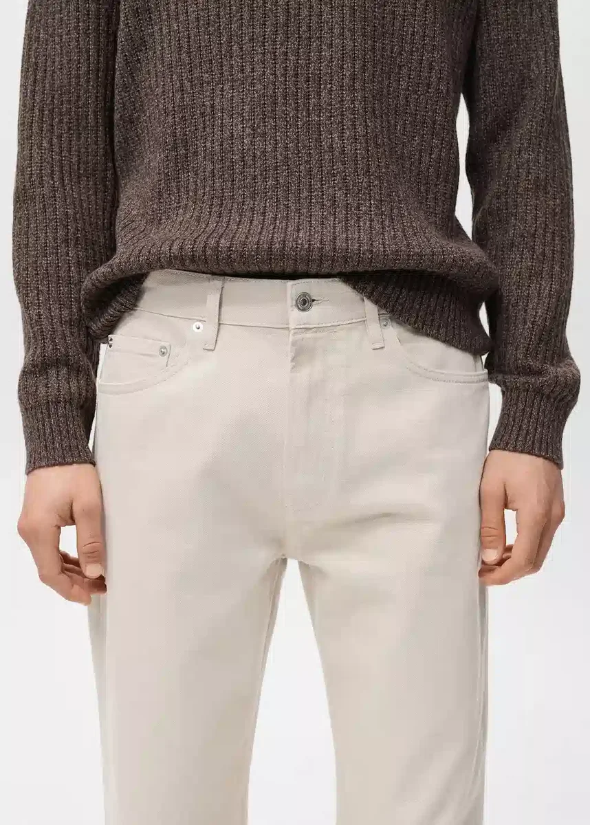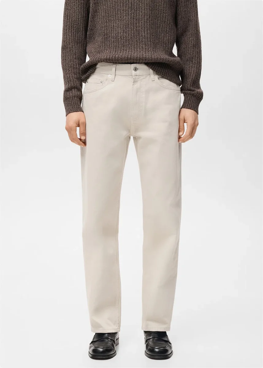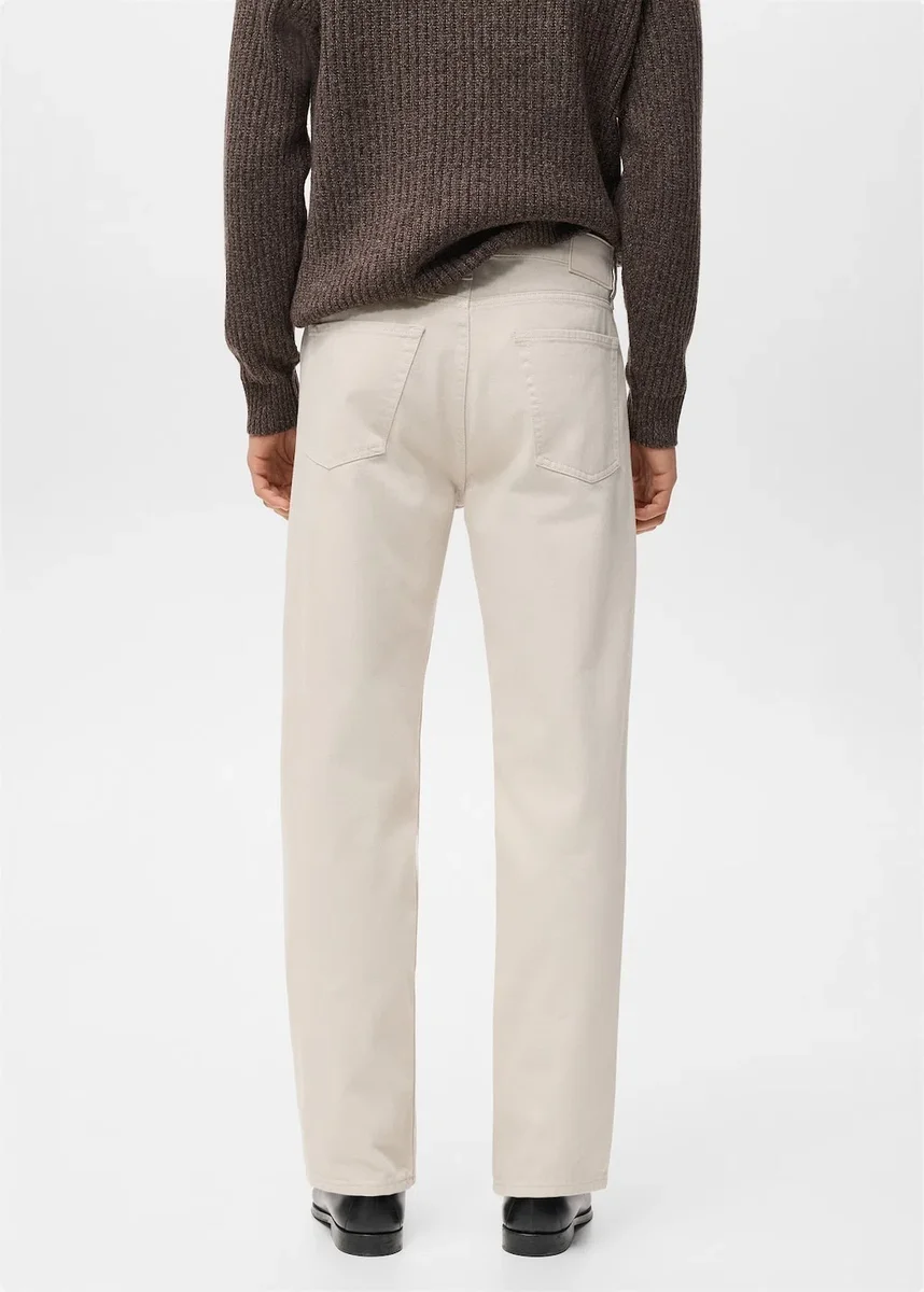 Vestibilità dritta. Tessuto 100% cotone stile denim. Due tasche anteriori. Tasca portamonete. Due tasche applicate sul retro. Passanti per cintura. Chiusura frontale con cerniera e bottone.
