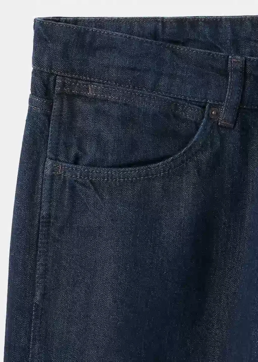 Vestibilità regolare. Tessuto denim 100% cotone. Design corto. Due tasche laterali. Tasca portamonete. Due tasche applicate sul retro. Passanti per cintura. Chiusura con zip e bottone