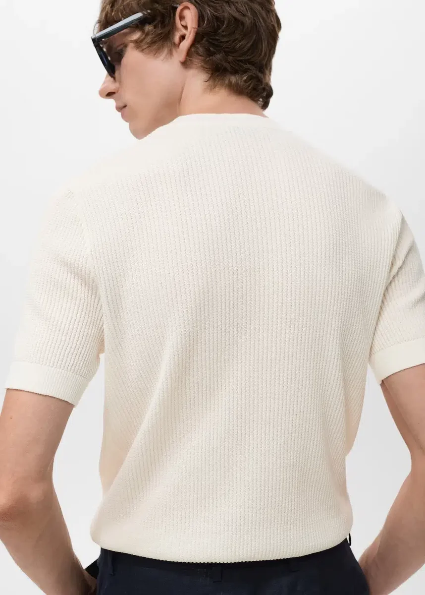 Tessuto in viscosa, lino e cotone. Modello dritto. Girocollo. Collo, maniche e orlo a costine. Maniche corte.