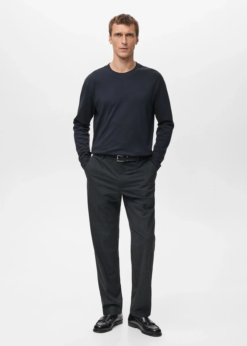 Tessuto 100% cotone. Vestibilità regolare. Girocollo. Collo e polsini a costine. Maniche lunghe. Orlo dritto