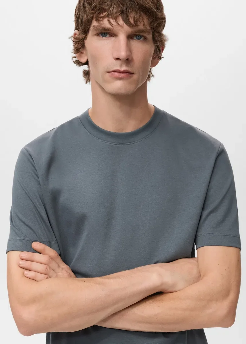 Tessuto 100% cotone. Peso medio. Vestibilità regolare. Girocollo. Maniche corte. Orlo dritto