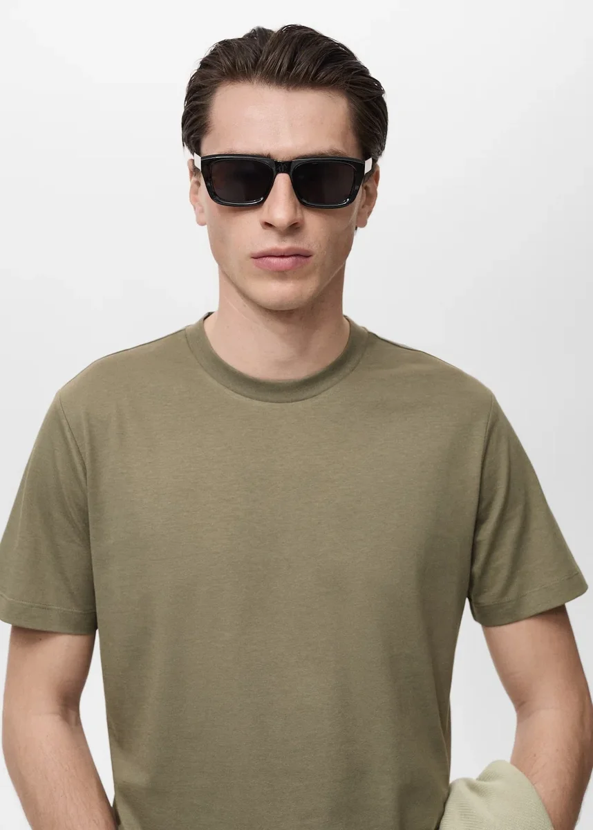 Vestibilità slim. Tessuto 100% cotone. Girocollo. Maniche corte. Orlo dritto.