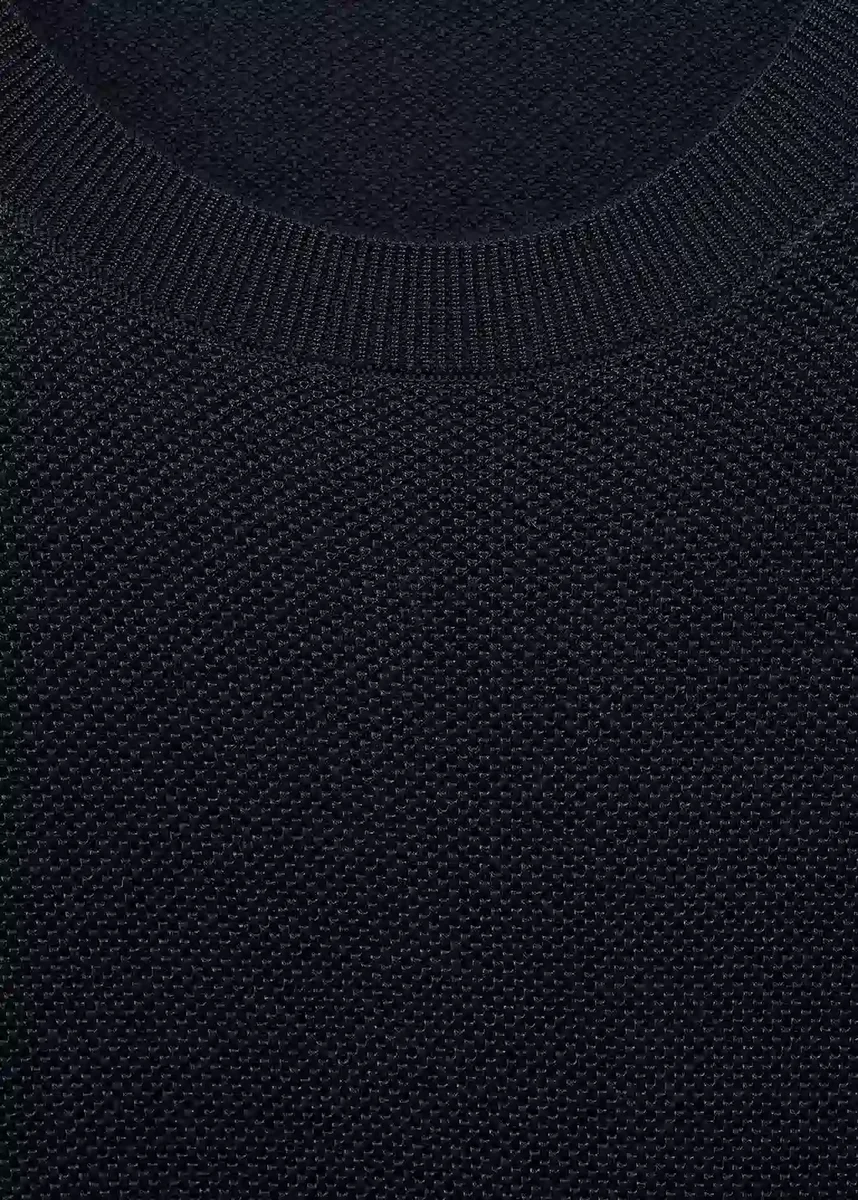 Silhouette dritta. Tessuto misto cotone-viscosa. Maglia. Girocollo. Finiture a costine
