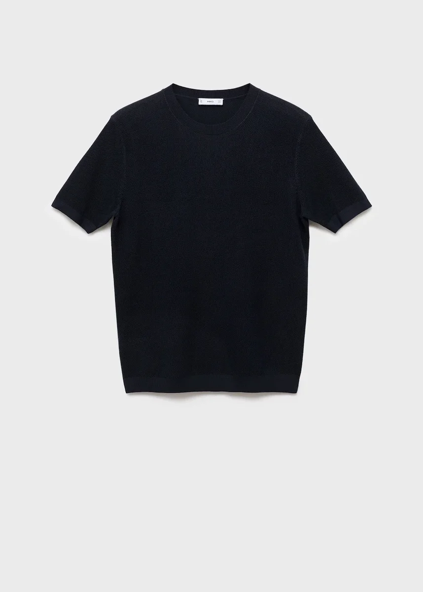 Silhouette dritta. Tessuto misto cotone-viscosa. Tessuto a maglia. Girocollo. Finiture a costine.