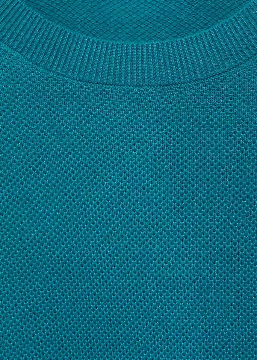 Silhouette dritta. Tessuto misto cotone-viscosa. Maglia. Girocollo. Finiture a costine