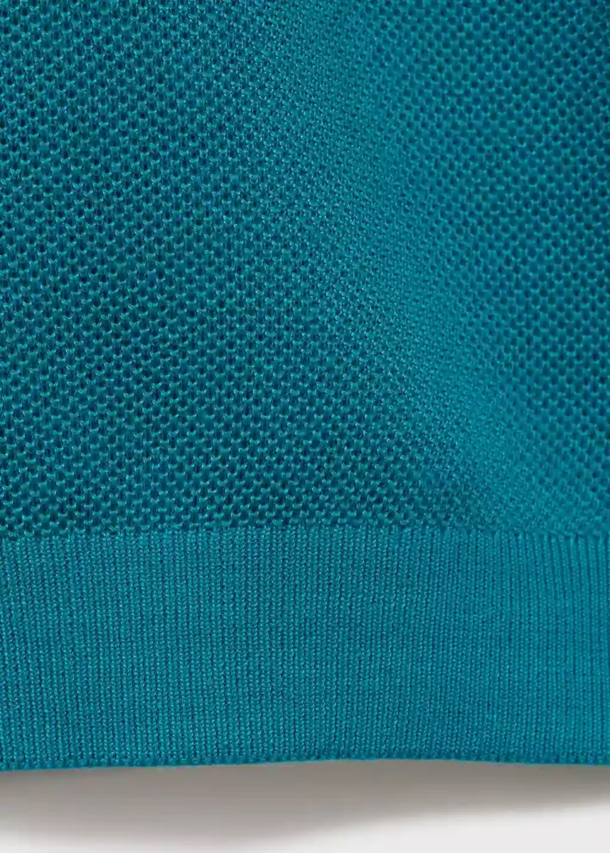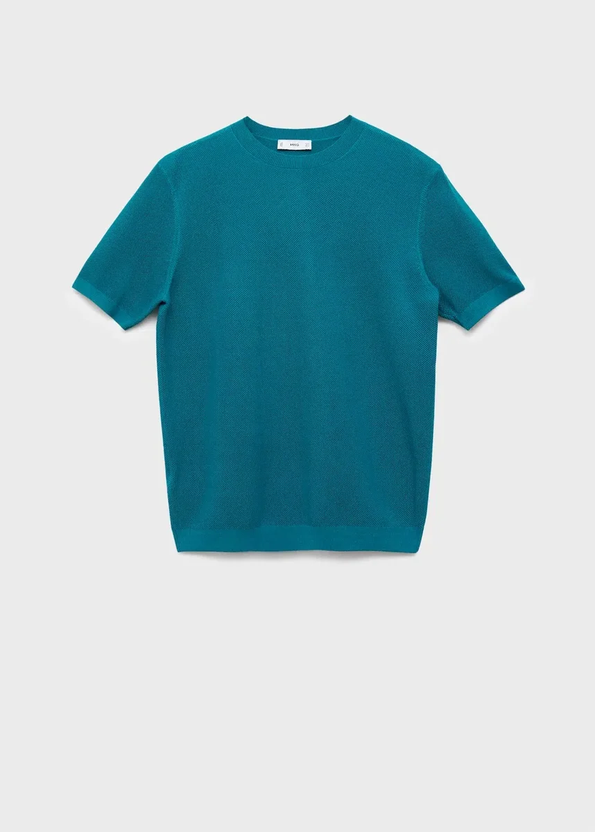 Silhouette dritta. Tessuto misto cotone-viscosa. Tessuto lavorato a maglia. Girocollo. Finiture a costine.