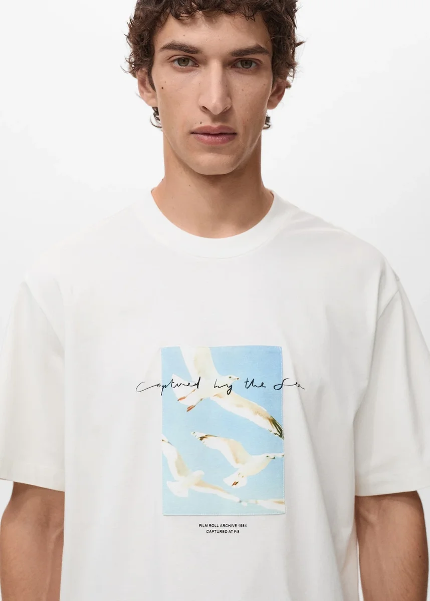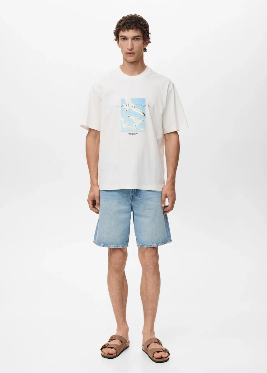 Con una vestibilità comoda, questo capo è realizzato in tessuto 100% cotone. Presenta un collo rotondo e maniche corte, con un disegno stampato sul davanti. Il modello è alto 190 cm e indossa una taglia M