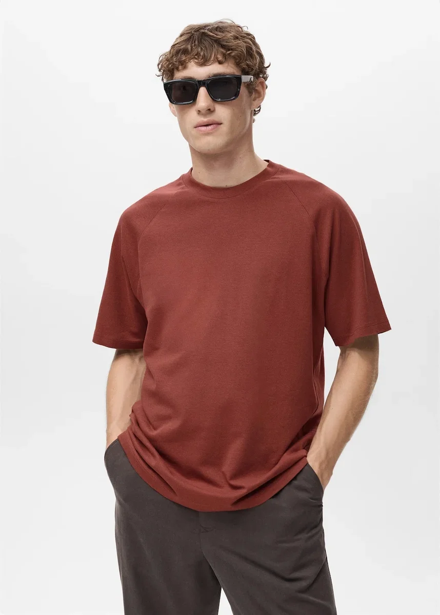 Con una vestibilità morbida, questo capo combina cotone e lino per offrire comfort. Presenta collo rotondo, maniche corte e cuciture a vista. L’orlo dritto completa il design. Il modello è alto 190 cm e indossa una taglia M.