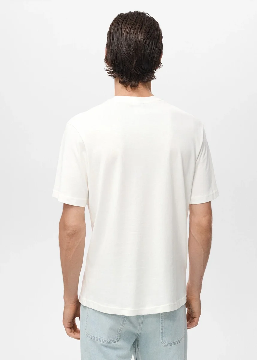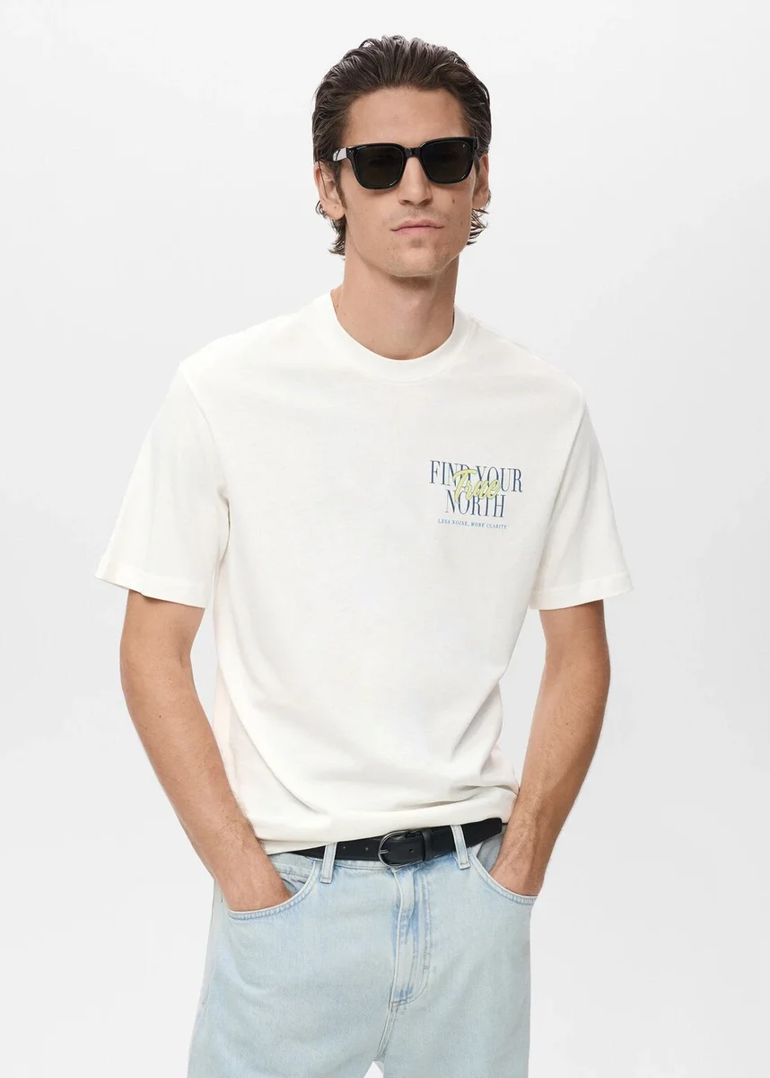 Tessuto 100% cotone. Vestibilità regolare. Girocollo. Maniche corte. Scritta stampata sul petto