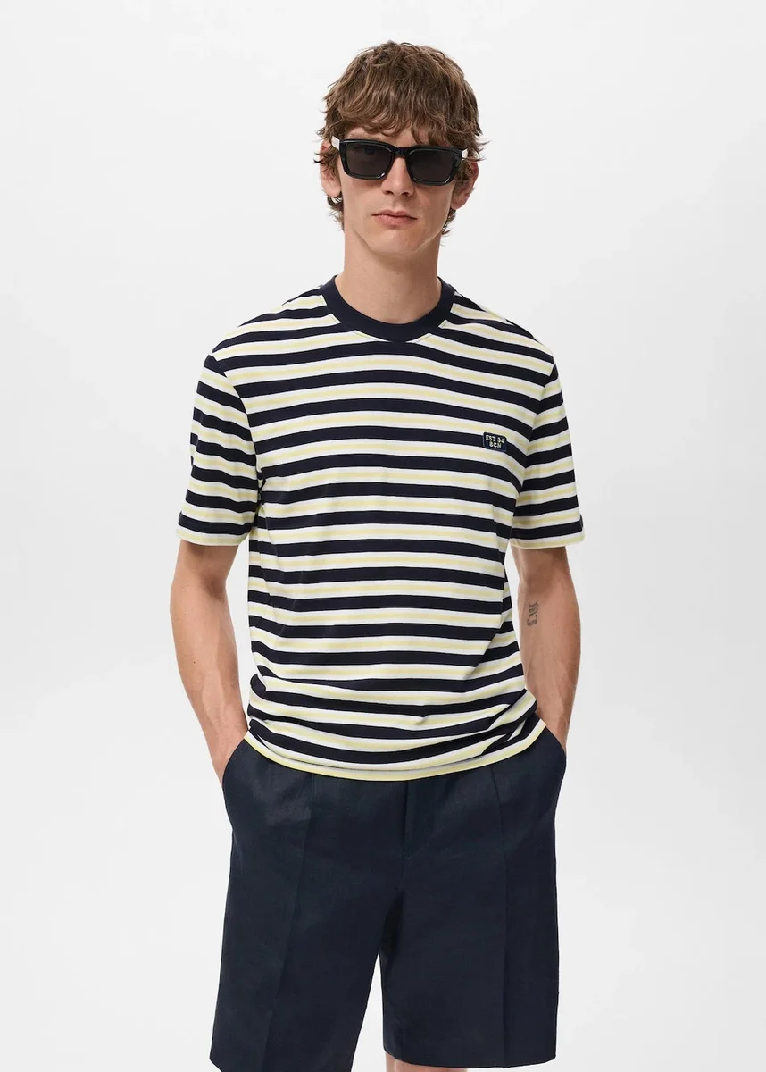 Vestibilità regolare. 100% cotone. Design a righe tricolori. Apertura sul retro. Maniche corte. Orlo dritto.