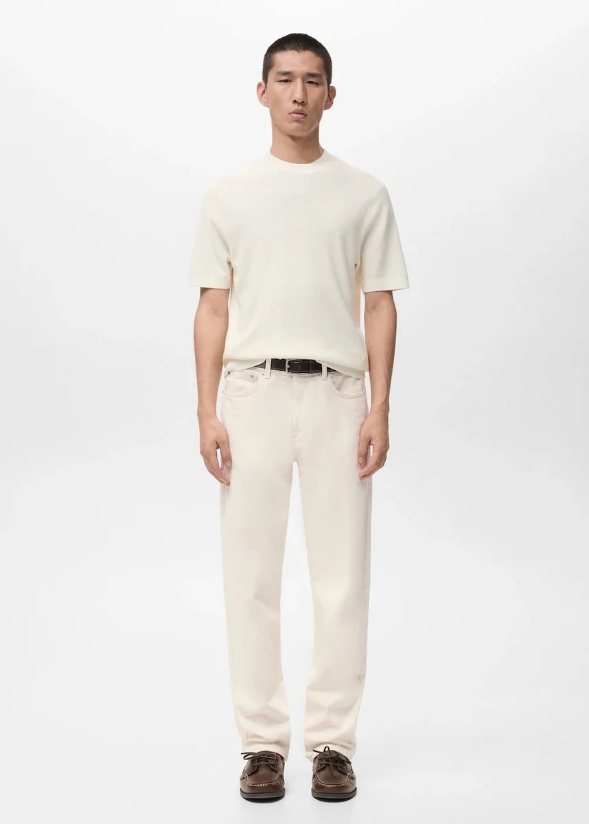 Vestibilità regolare. Tessuto misto cotone-viscosa. Girocollo. Maniche corte. Collo, maniche e orlo a costine.