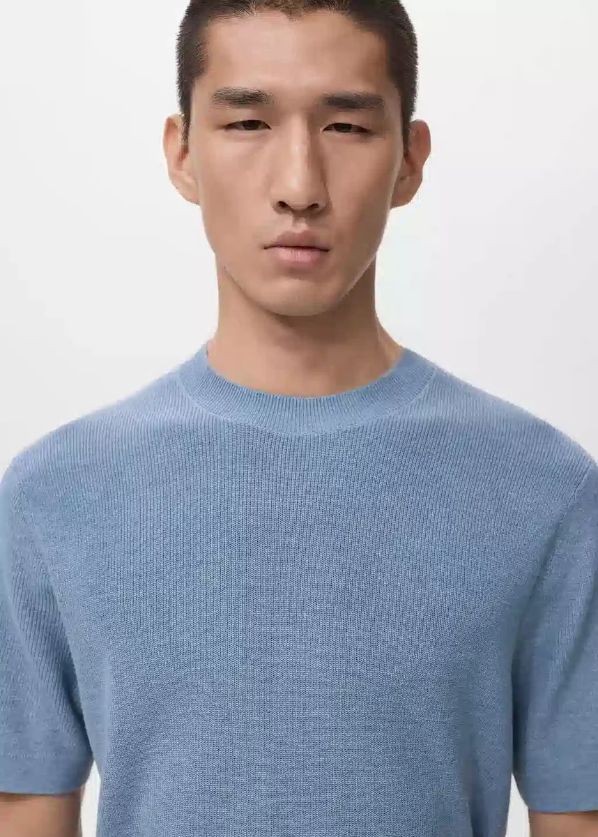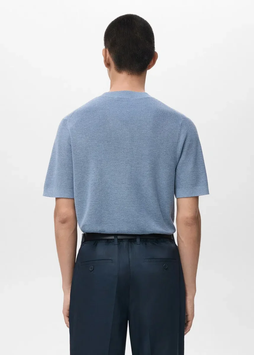 Vestibilità regolare. Tessuto misto cotone-viscosa. Girocollo. Maniche corte. Collo, maniche e orlo a costine.
