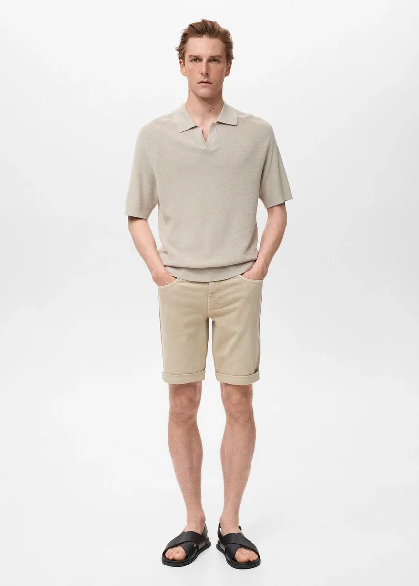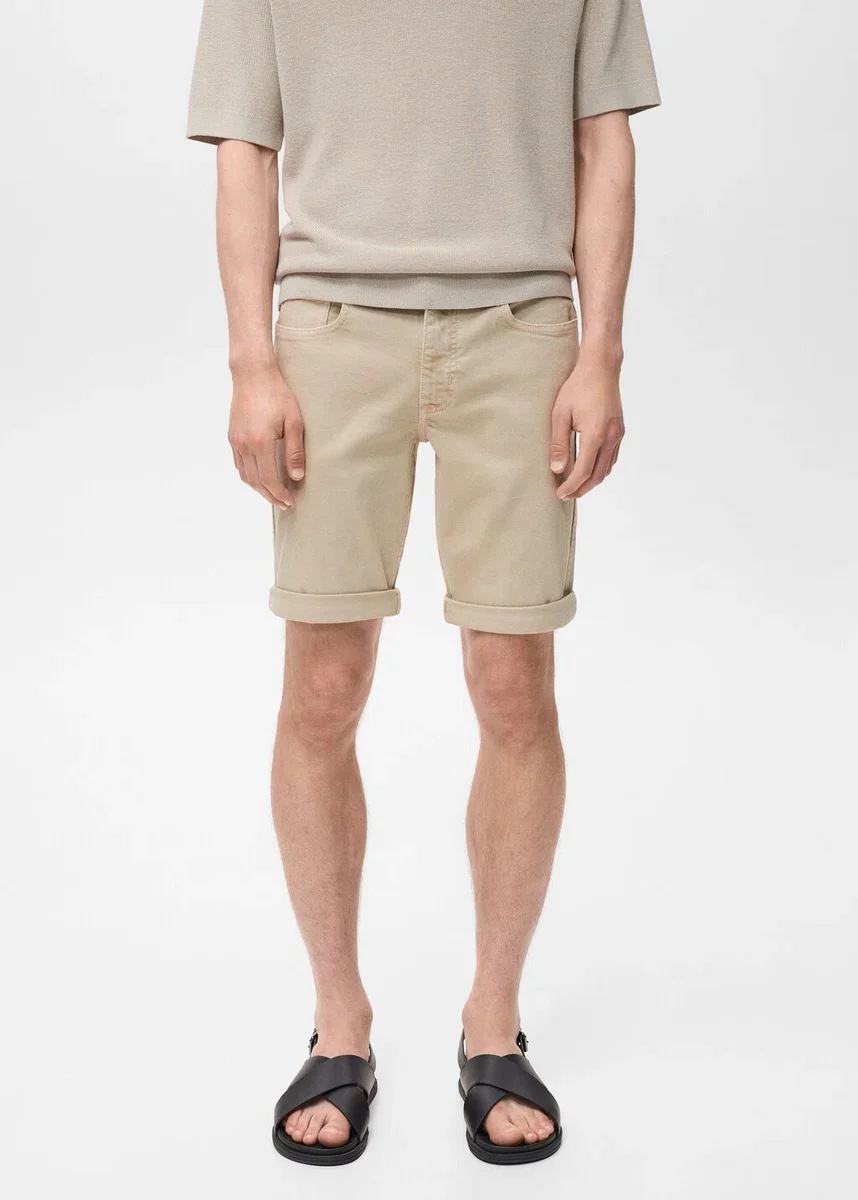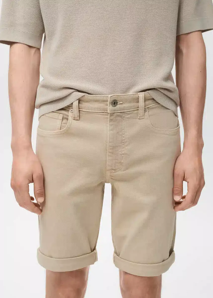 Realizzati in tessuto di cotone, questi bermuda slim fit presentano passanti per cintura e chiusura con bottone e cerniera. Sono dotati di due tasche laterali, una tasca portamonete e due tasche applicate sul retro. I bermuda hanno un orlo sul fondo. Il modello è alto 190 cm e indossa una taglia 42