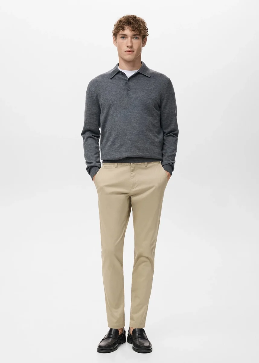 Modello chino. Vestibilità affusolata: taglio ampio nella parte superiore che si restringe dal ginocchio alla caviglia. Tessuto in cotone. Passanti per cintura. Vita con coulisse interna regolabile. Chiusura con zip e bottone. Morbido elastico sul davanti in vita per un maggiore comfort e per sostenere il pancione in crescita. Tasca portamonete all’altezza dei fianchi. Due tasche anteriori. Due tasche con patta abbottonata sul retro. Silhouette slim. Vita regolare. Lunghezza standard