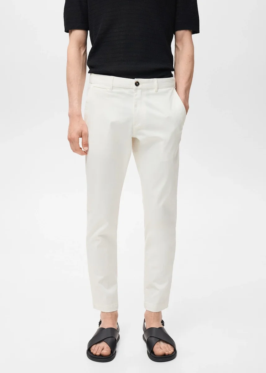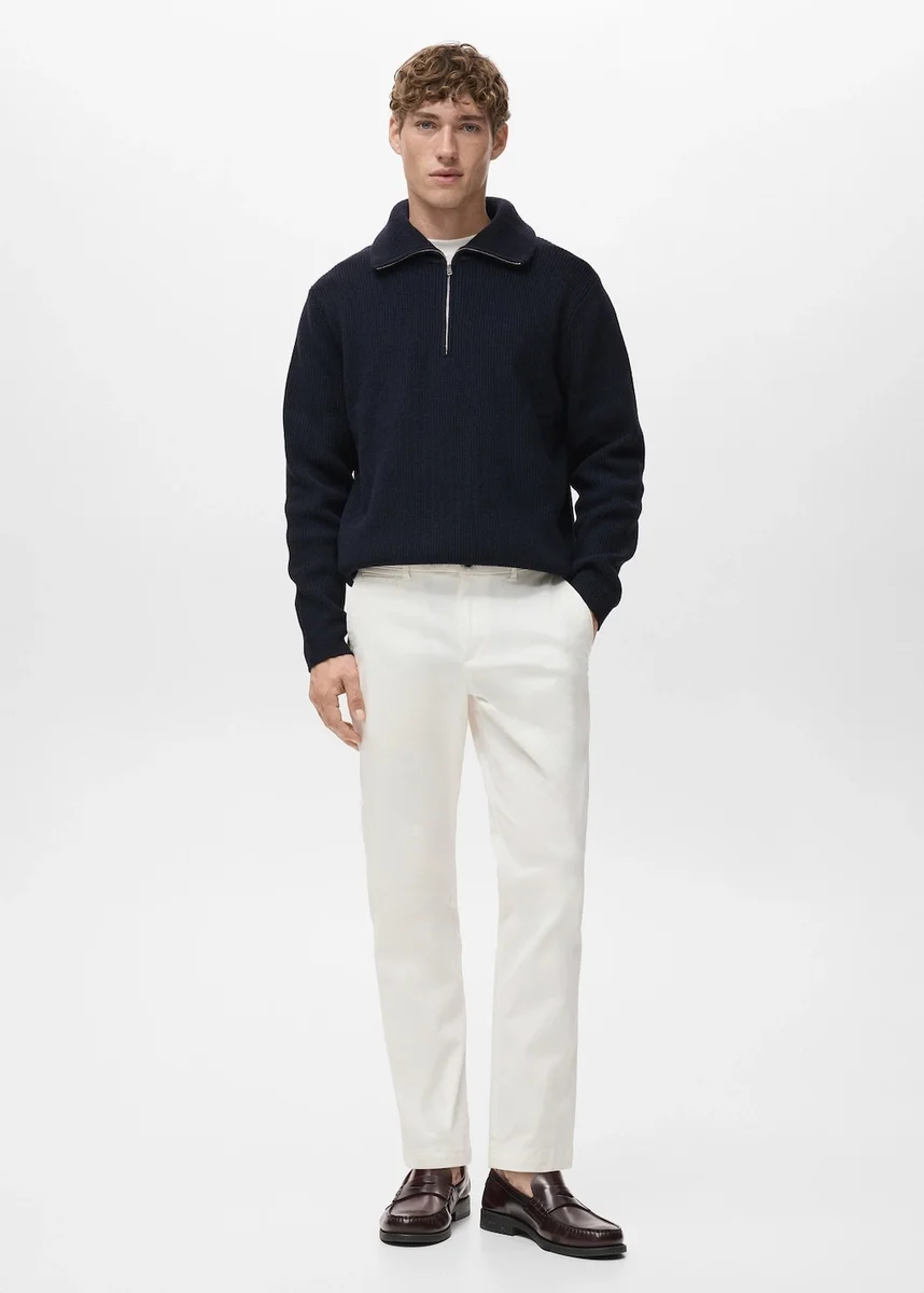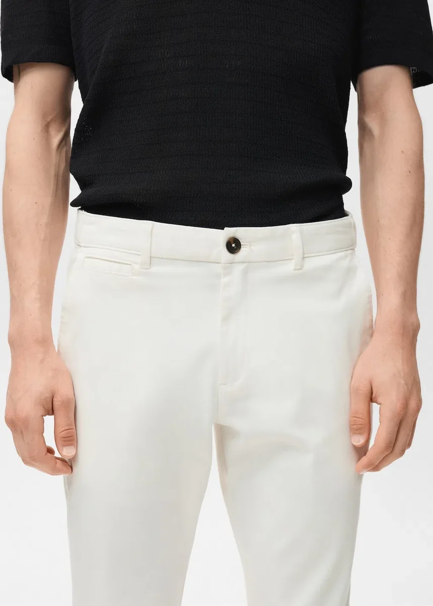 Stile chino. Vestibilità affusolata: taglio ampio nella parte superiore che si restringe dal ginocchio alla caviglia. Tessuto in cotone. Passanti per cintura. Vita con coulisse interna regolabile. Chiusura con zip e bottone. Morbido elastico sul davanti in vita per un maggiore comfort e per sostenere il pancione in crescita. Tasca portamonete all’altezza dei fianchi. Due tasche anteriori. Due tasche con patta abbottonata sul retro. Lunghezza standard. Silhouette slim. Vita regolare.
