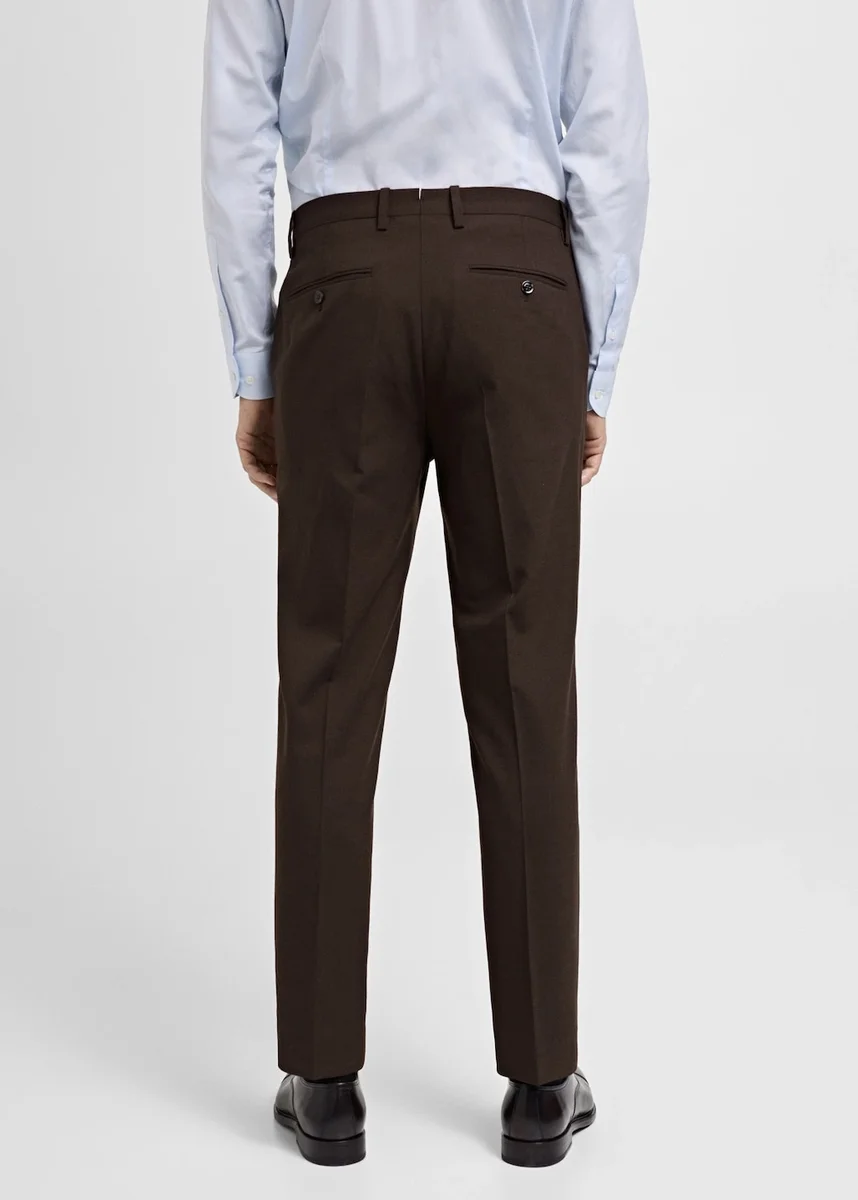 Collezione Casper Ruud x Mango. Vestibilità slim. 100% lana. Dettagli a righe stirate. Passanti per cintura. Due tasche laterali. Due tasche a filetto sul retro. Chiusura frontale con cerniera, gancio e doppio bottone.