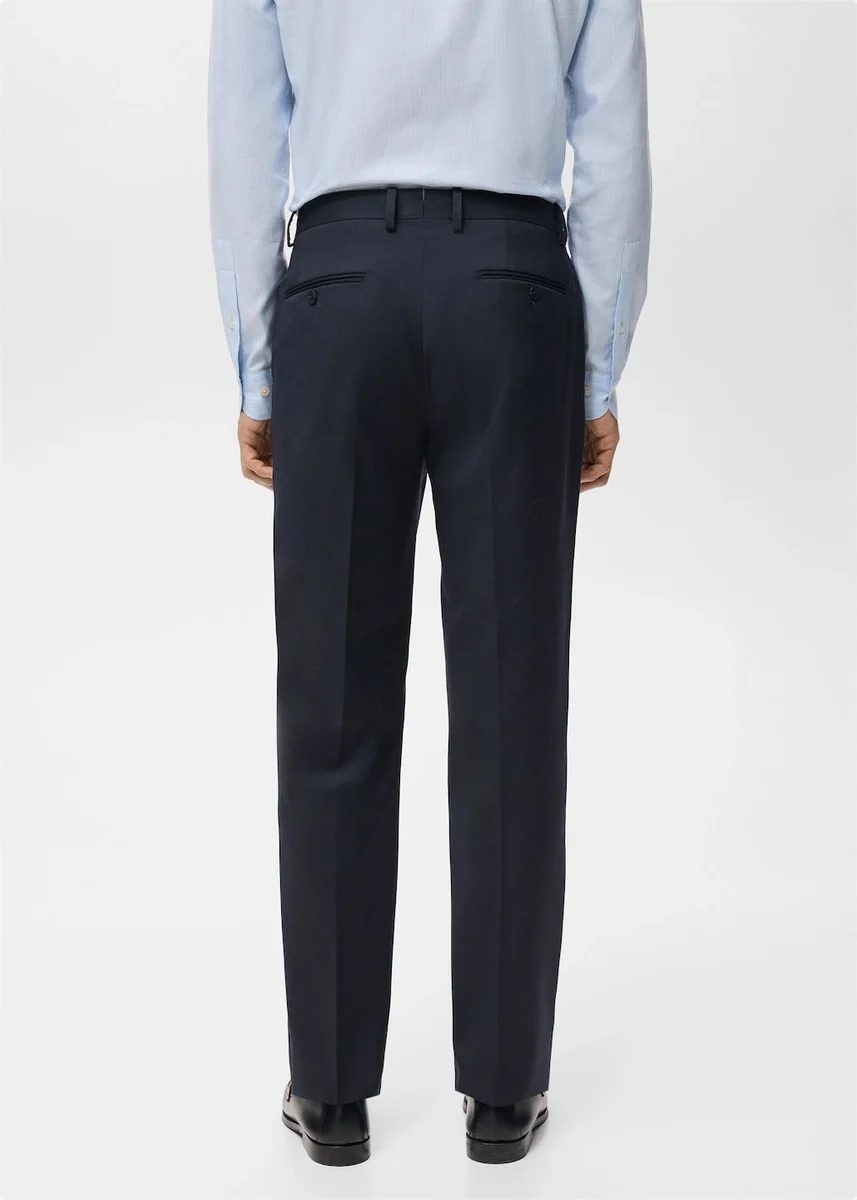 Vestibilità slim. Tessuto 100% lana. Dettaglio a righe stirate. Passanti per cintura. Due tasche laterali. Due tasche a filetto sul retro. Chiusura frontale con cerniera, gancio e doppio bottone