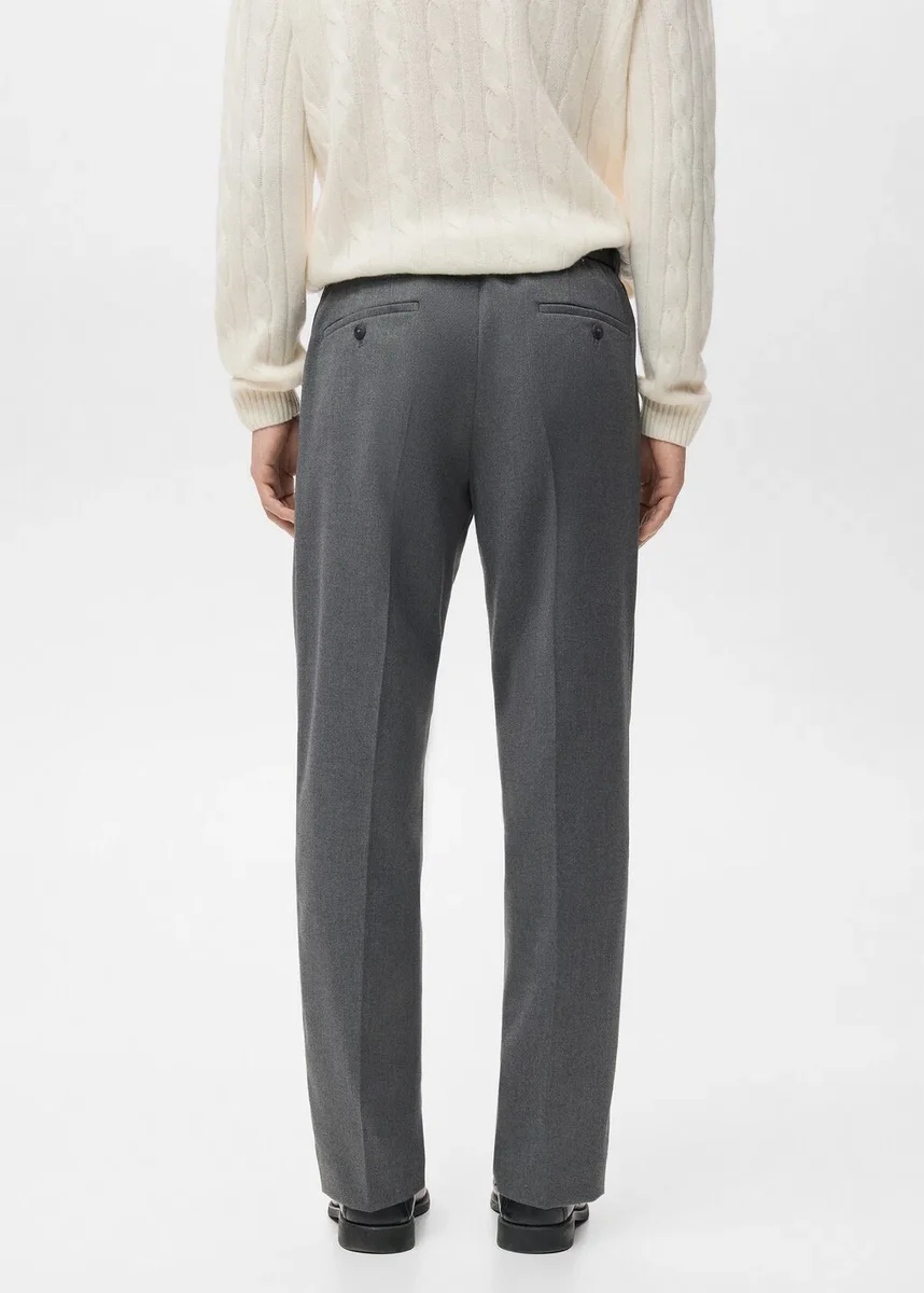 Collezione Party. Tessuto misto cotone. Design dritto. Elastico arricciato sul retro della cintura. Due tasche laterali. Due tasche a filetto con bottone sul retro. Passanti per cintura. Chiusura con zip e bottone.