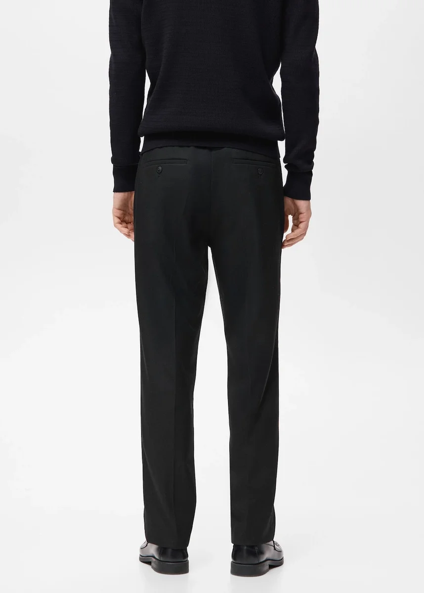Collezione Party. Tessuto misto cotone. Design dritto. Elastico arricciato sul retro della cintura. Due tasche laterali. Due tasche a filetto con bottone sul retro. Passanti per cintura. Chiusura con zip e bottone.