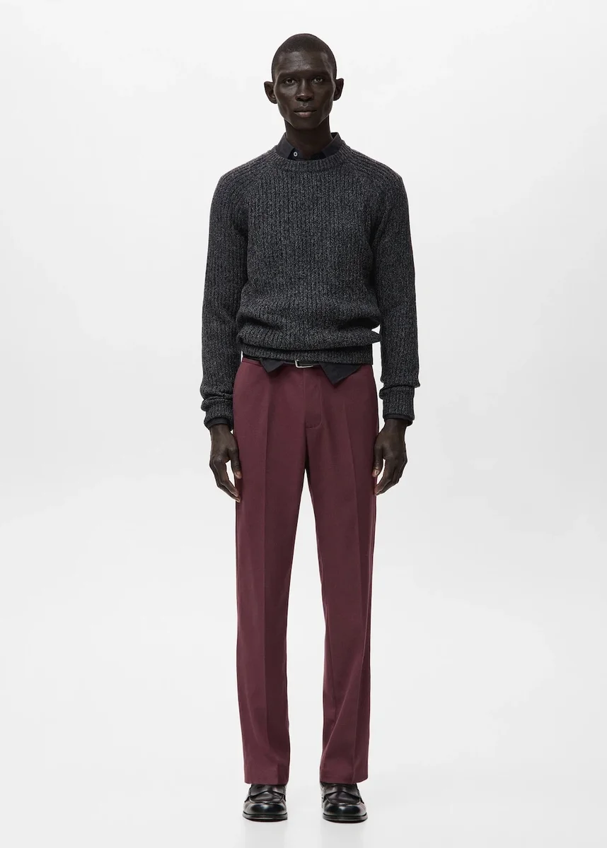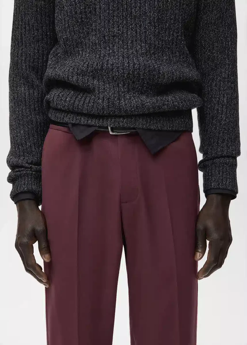 Vestibilità regolare. Tessuto misto cotone. Dettaglio a strisce stirate sul davanti e sul retro. Due tasche laterali. Due tasche con patta e bottone sul retro. Passanti per cintura. Chiusura con zip e bottone.