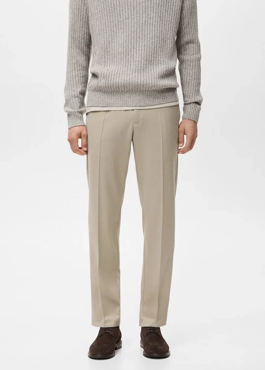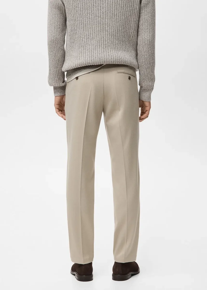 Vestibilità regolare. Tessuto misto cotone. Dettagli pinze anteriori e posteriori. Due tasche laterali. Due tasche con patta e bottone sul retro. Passanti per cintura. Chiusura con zip e bottone