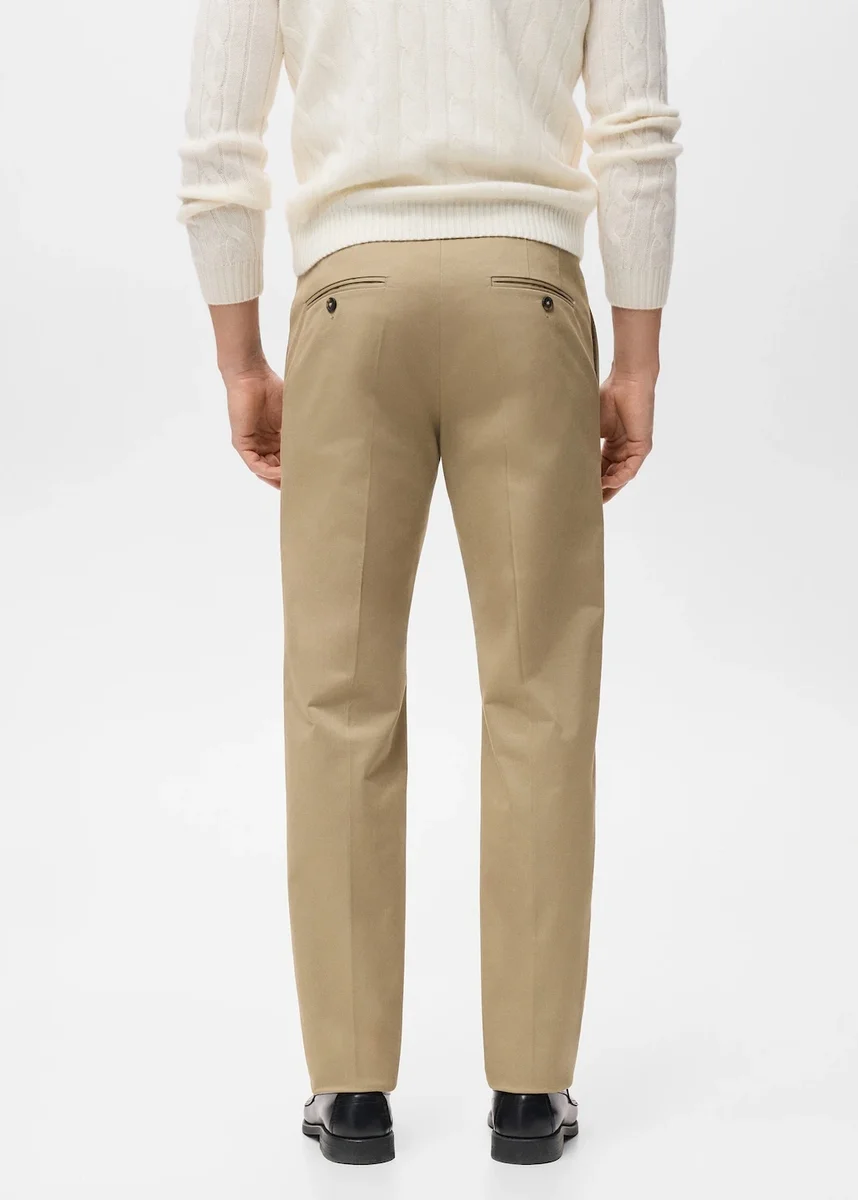 Tessuto in cotone. Vestibilità regolare. Dettaglio a strisce stirate sul davanti e sul retro. Chiusura frontale con zip e bottone. Passanti per cintura. Due tasche laterali. Due tasche a filetto con bottone sul retro.p>
