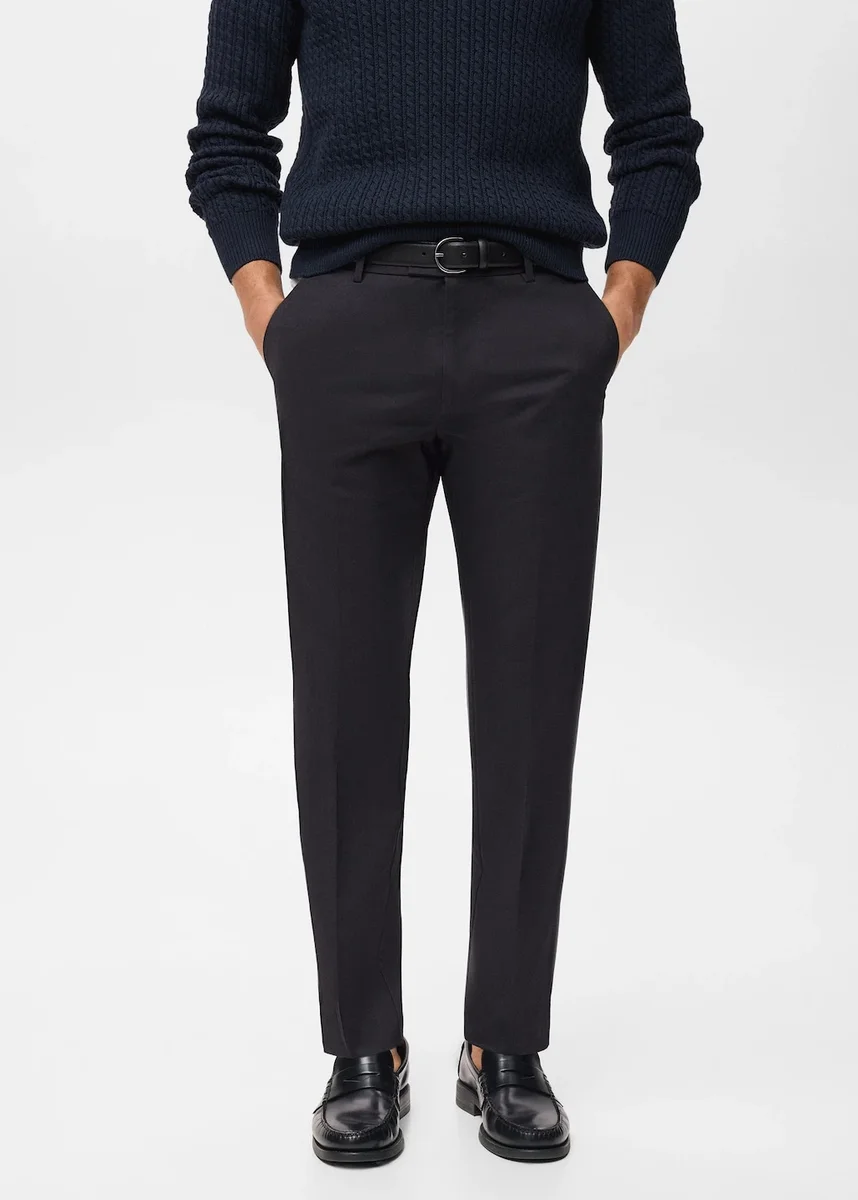 Tessuto in cotone. Vestibilità regolare. Dettaglio a strisce stirate sul davanti e sul retro. Chiusura frontale con zip e bottone. Passanti per cintura. Due tasche laterali. Due tasche a filetto con bottone sul retro.p>