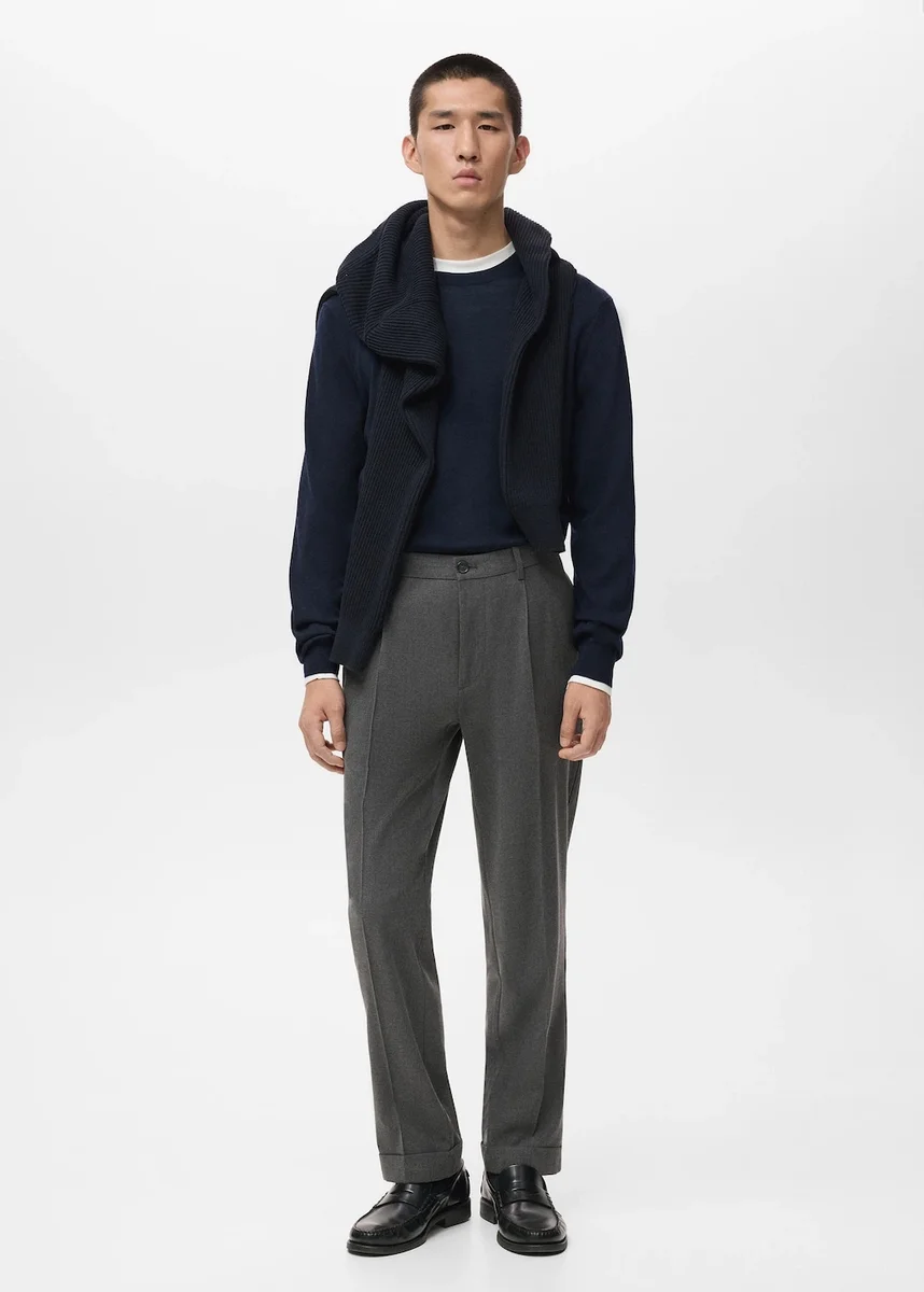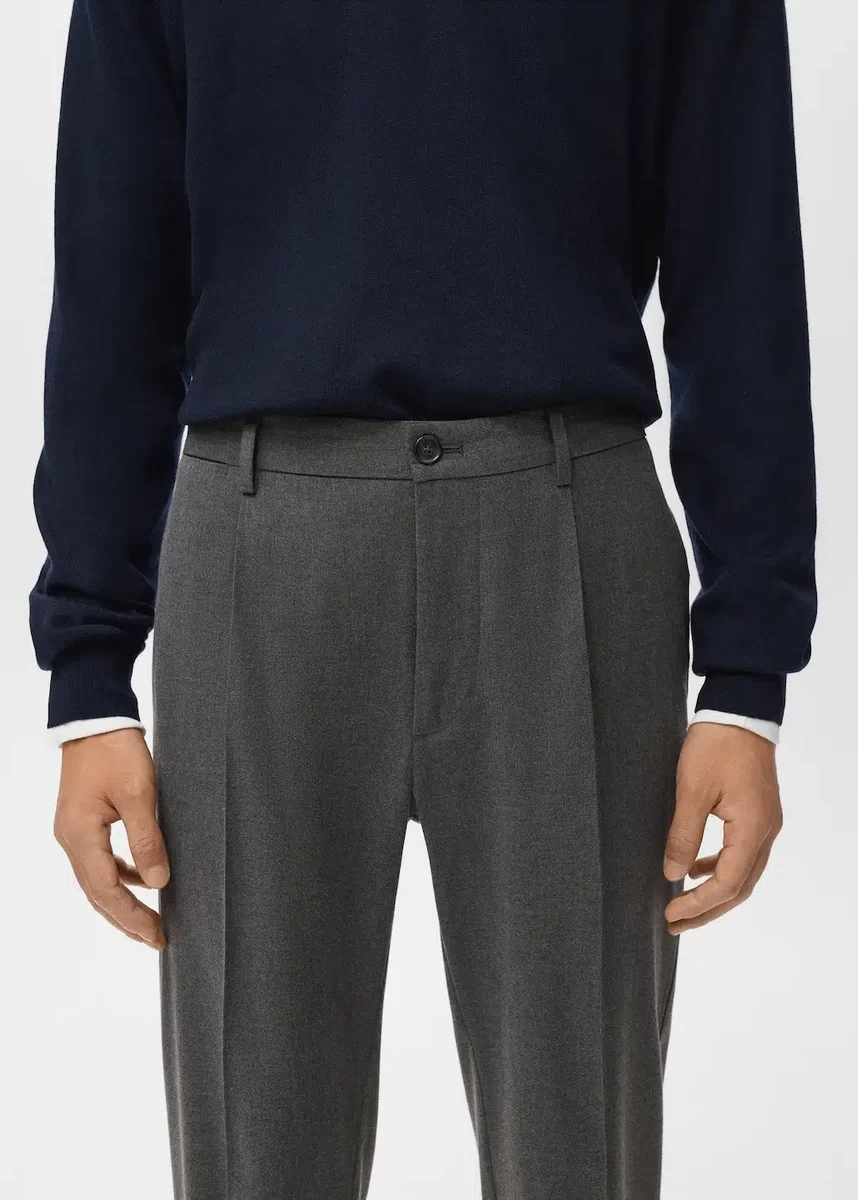 Casper Ruud x Mango Collection. Vestibilità regolare. Tessuto misto lana. Tessuto flanella. Pieghe sul davanti. Due tasche laterali. Passanti per cintura. Chiusura frontale con zip e bottoni. Orlo sul fondo. ESSENTIALS: Realizzati per durare. Abbiamo rafforzato i nostri standard di qualità aggiungendo nuovi test di resistenza ai nostri capi. Progettati con un’attenta considerazione della loro struttura, sono ancora più resistenti, versatili e intramontabili.
